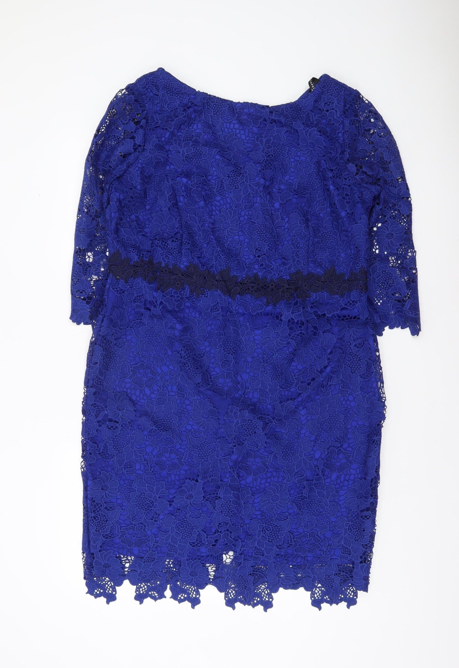 Paper Dolls Women Blue Lace Sheath Dress UK 18 Formal 3/4 Sleeve