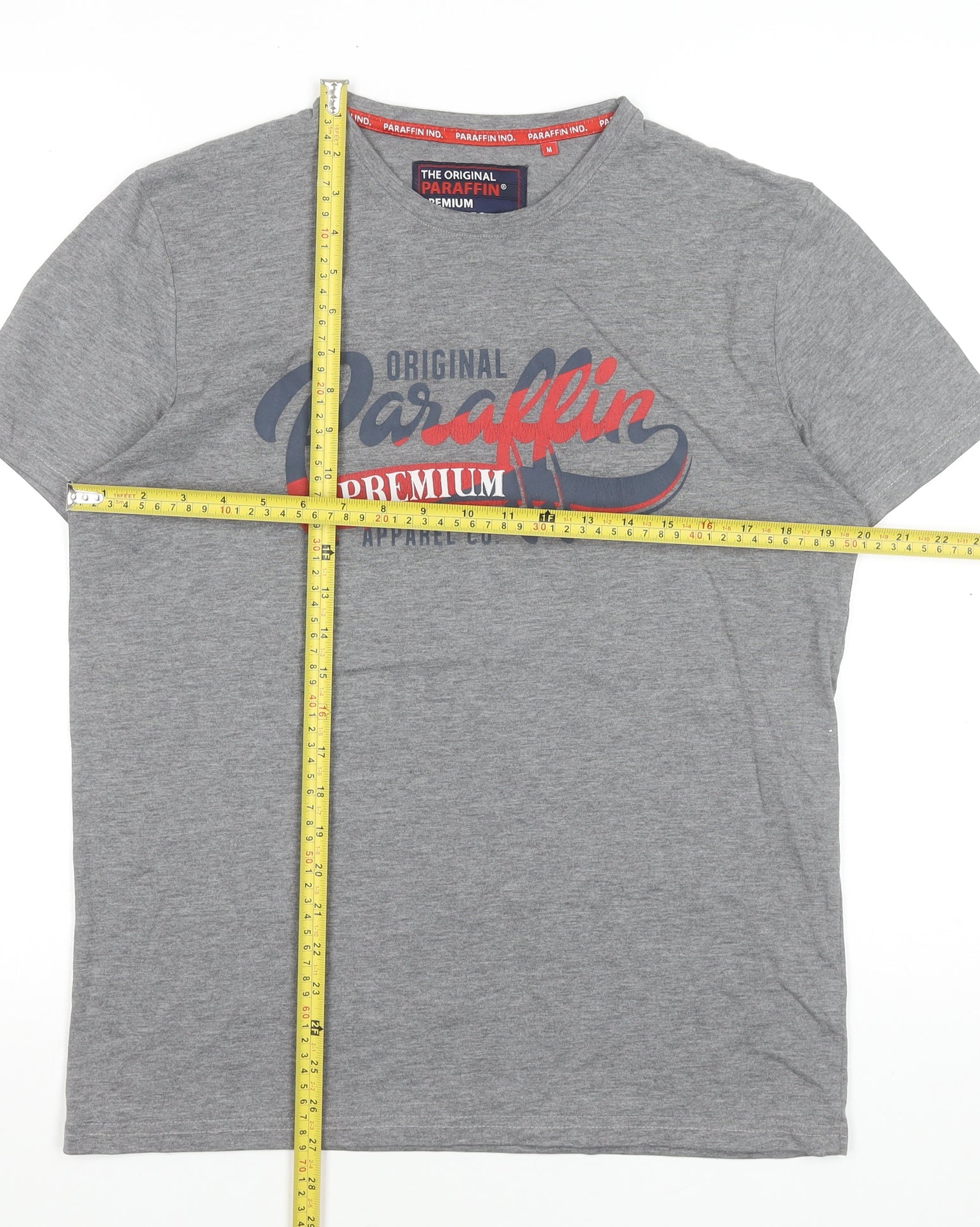 Paraffin Men's Grey Graphic Print Crew Neck Cotton T-Shirt Size M