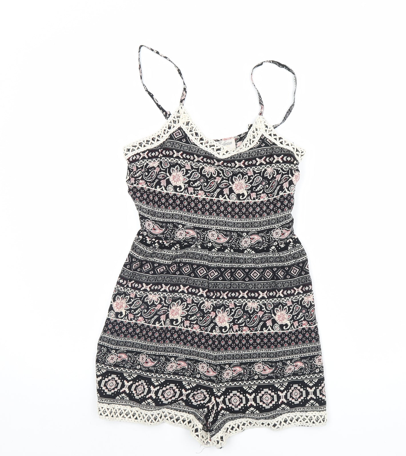 Parisian Collection Womens Black Striped Playsuit One-Piece Size 8 L3 in