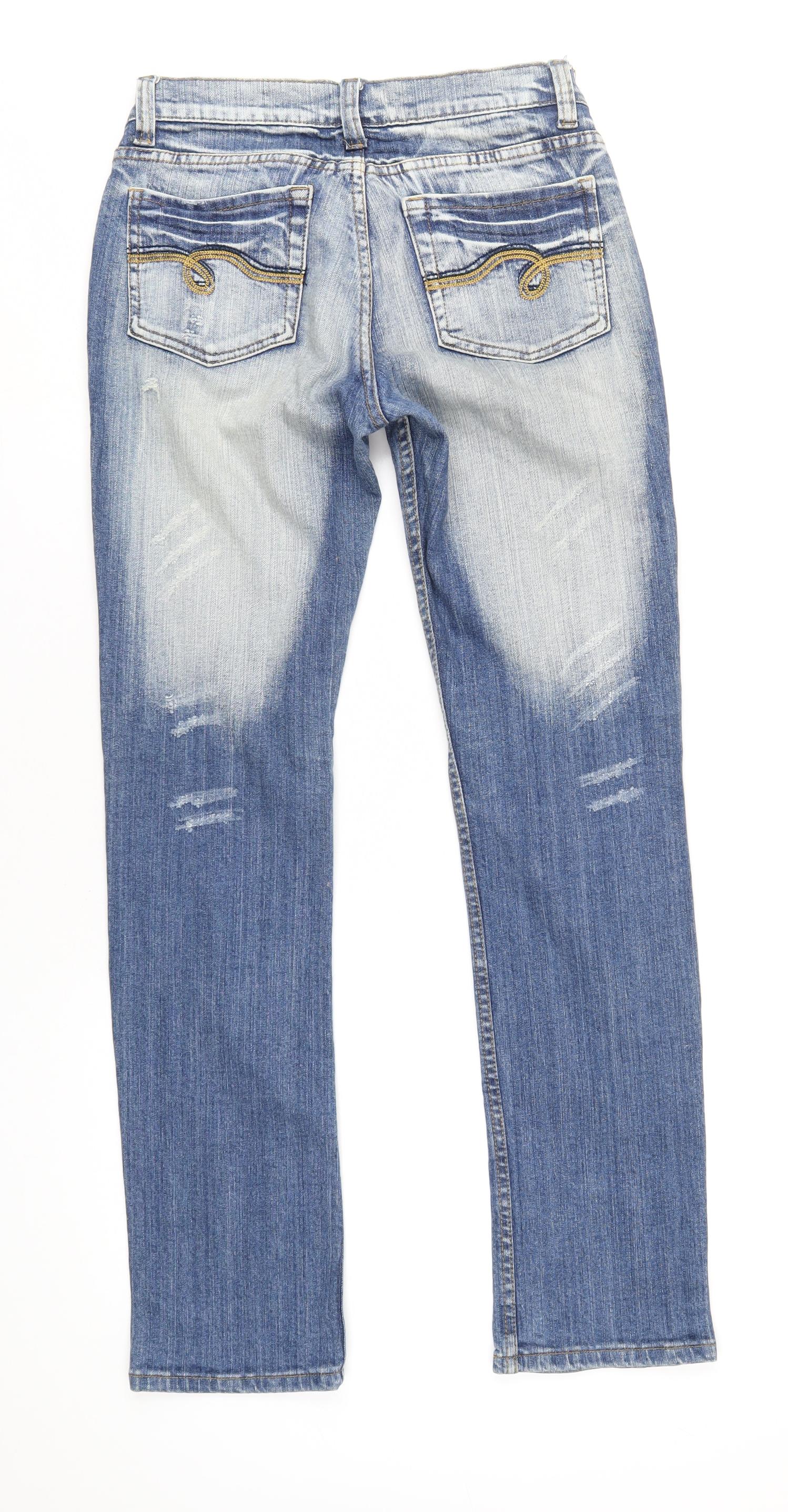 PARISIAN SIGNATURE Womens Blue Cotton Straight Jeans Size 12 L32 in Regular Zip