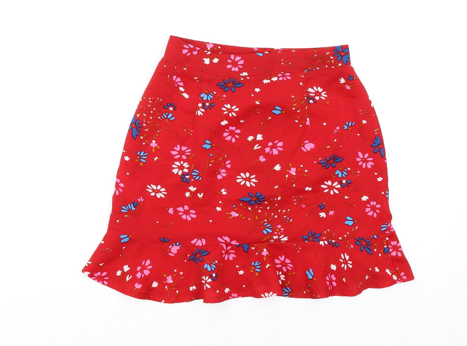 PARISIAN SIGNATURE Womens Red Floral Polyester A-Line Skirt Size 6 Button
