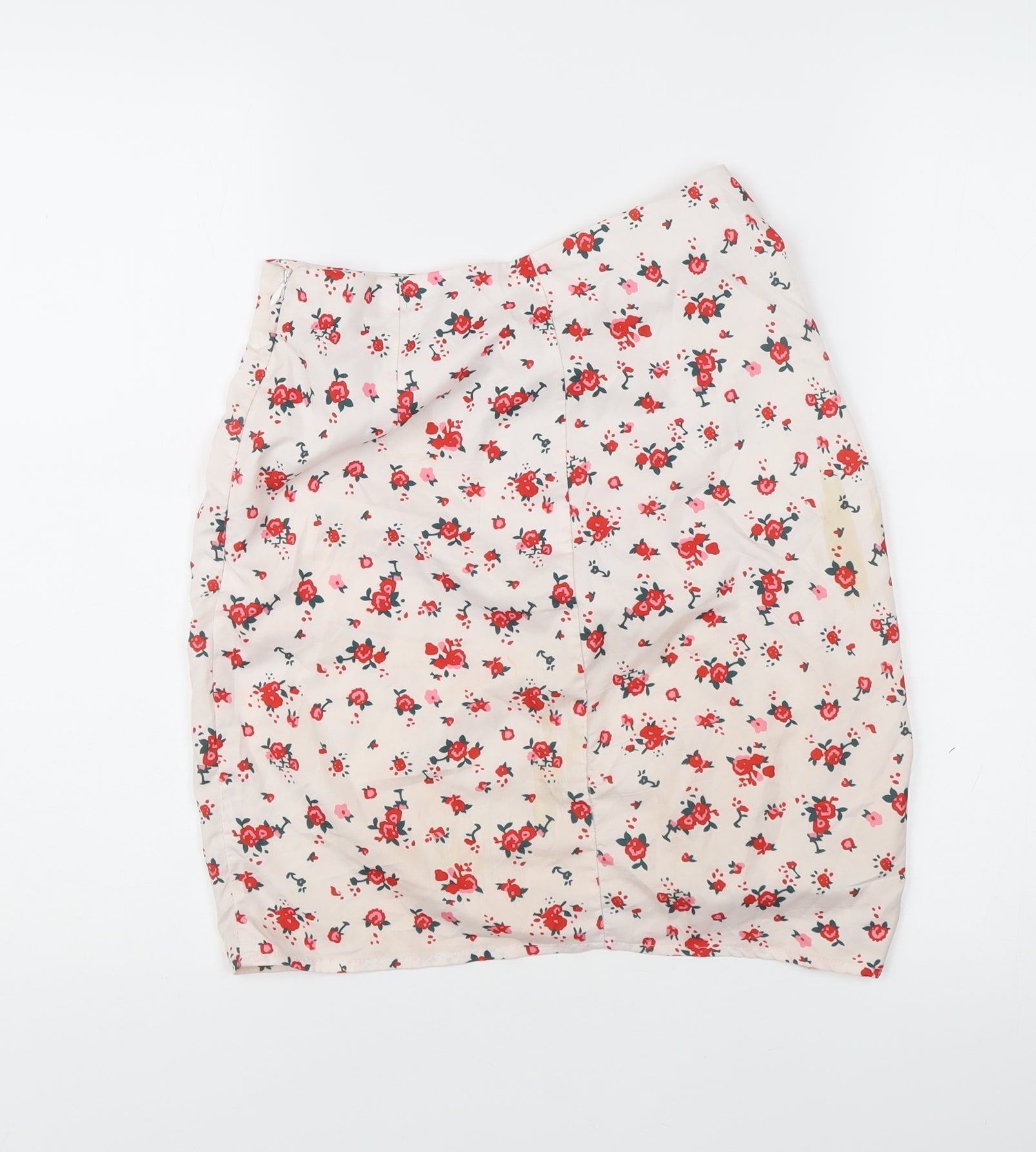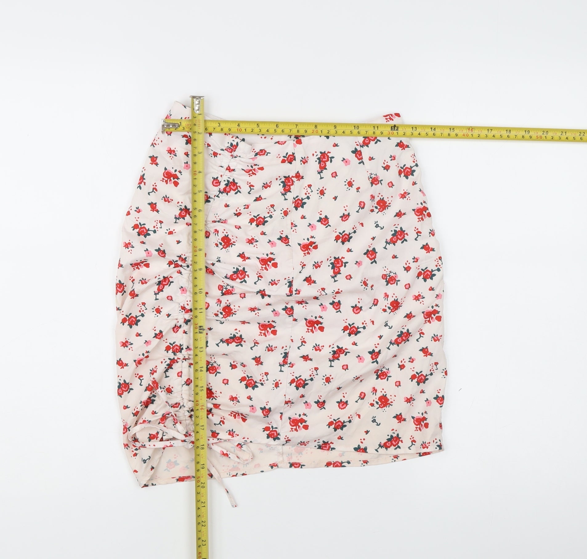 Parisian Women’s Beige Floral Ruched Short Pencil Skirt Size M
