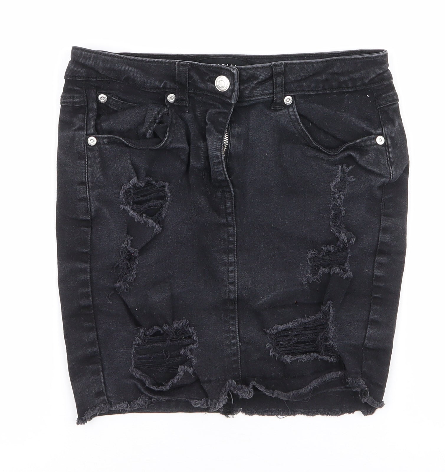 Parisian Womens Black Cotton Mini Skirt Size 8 Zip - Distressed
