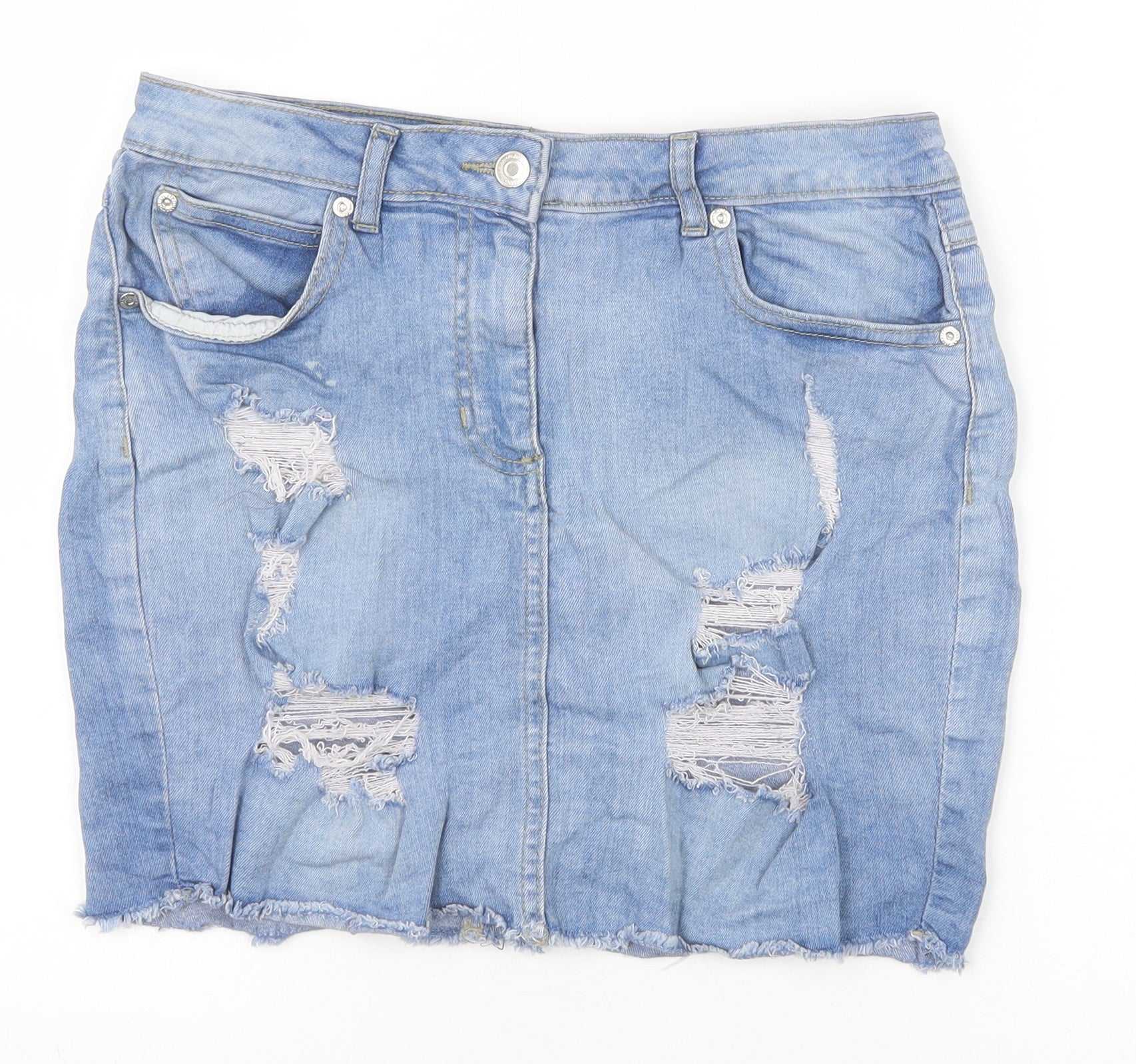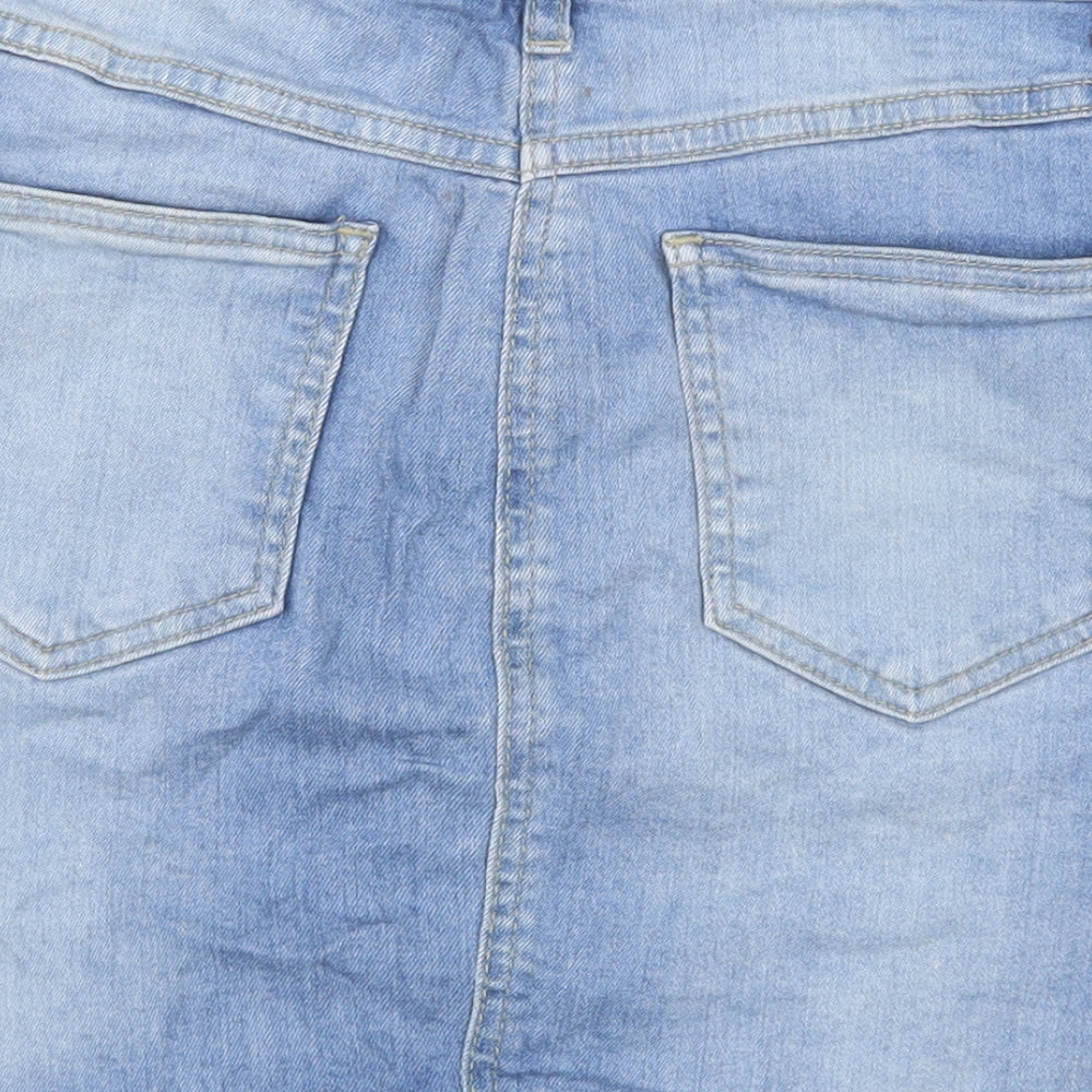 Parisian Womens Blue Cotton Straight & Pencil Skirt Size 10 Zip - Distressed Look