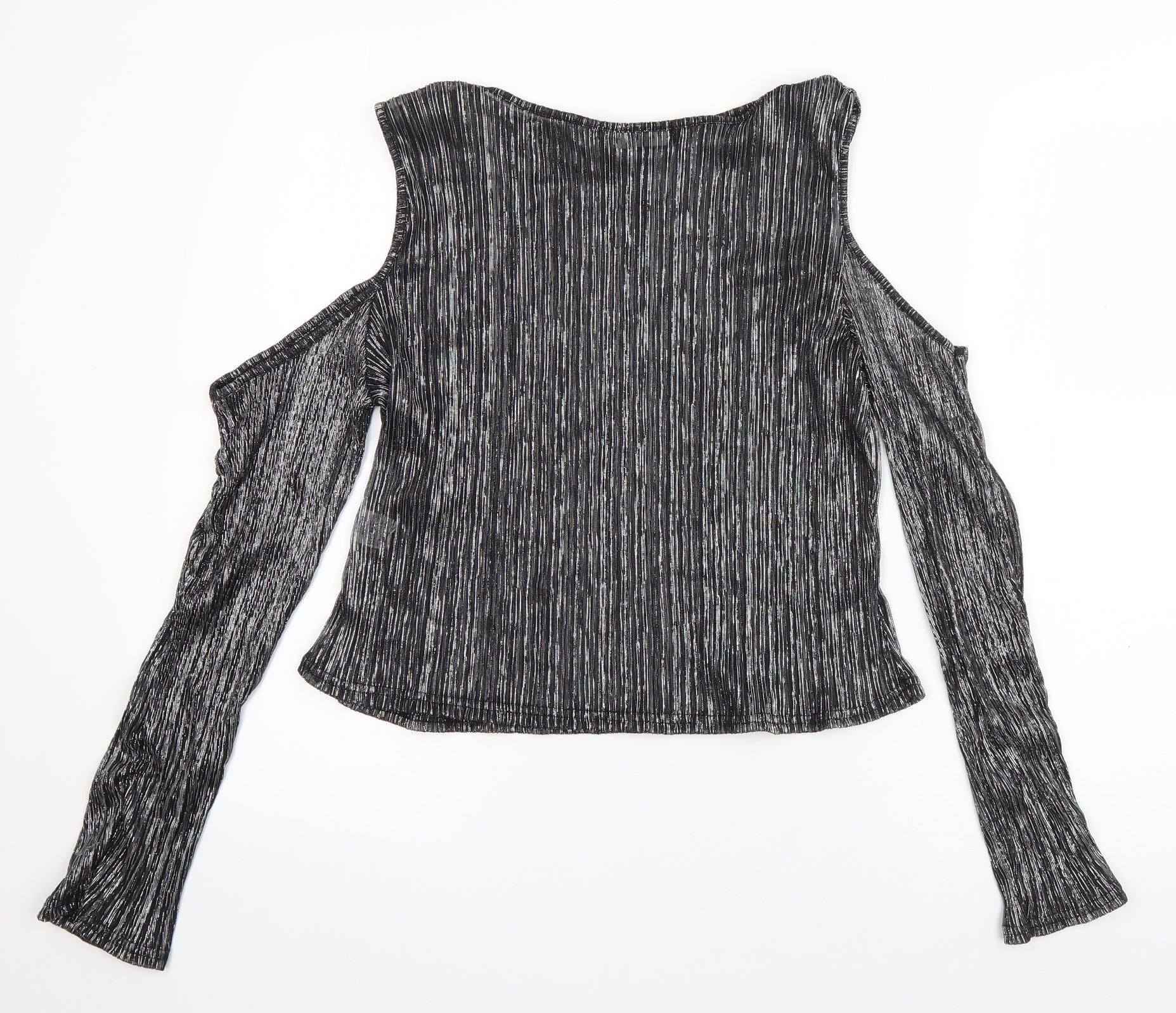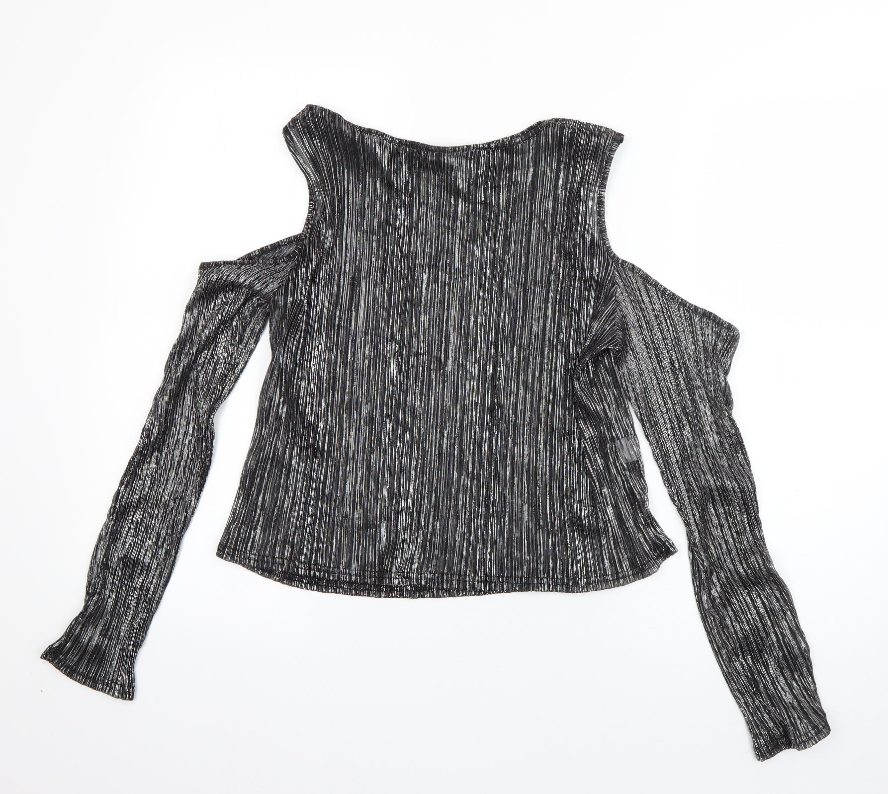 Parisian Womens Silver Polyester Basic T-Shirt Size 14 Boat Neck - Pleated