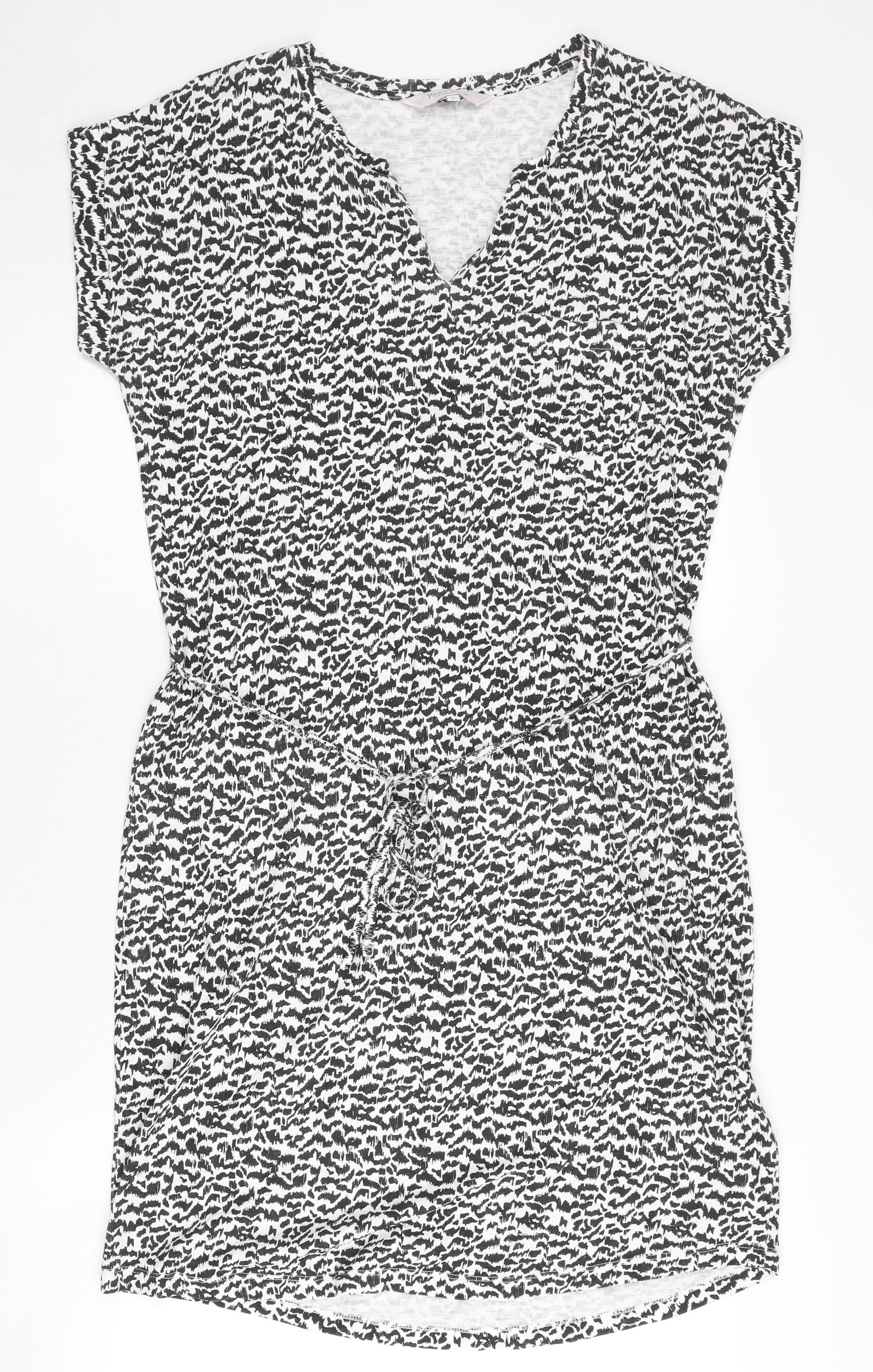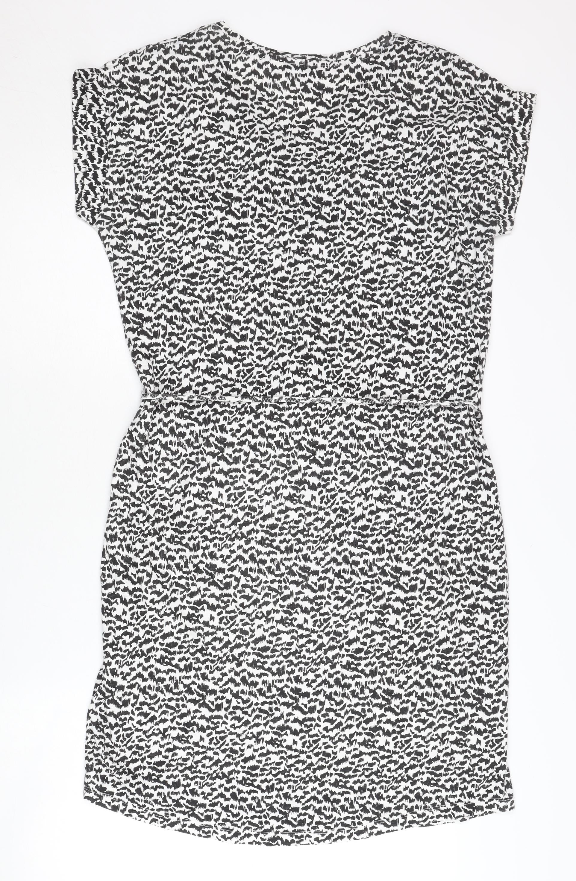 Part Two Women Black Animal Print V-Neck Shirt Dress M