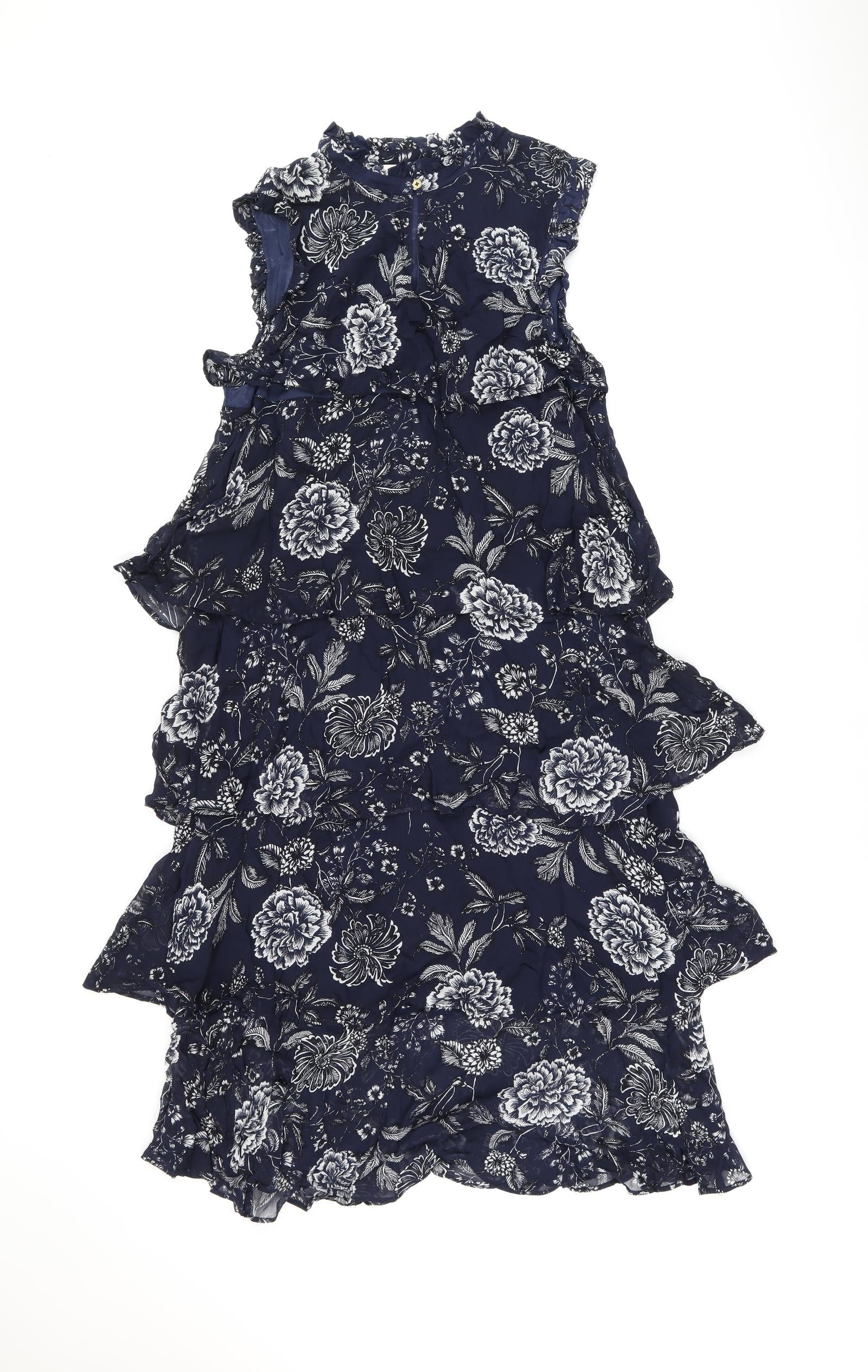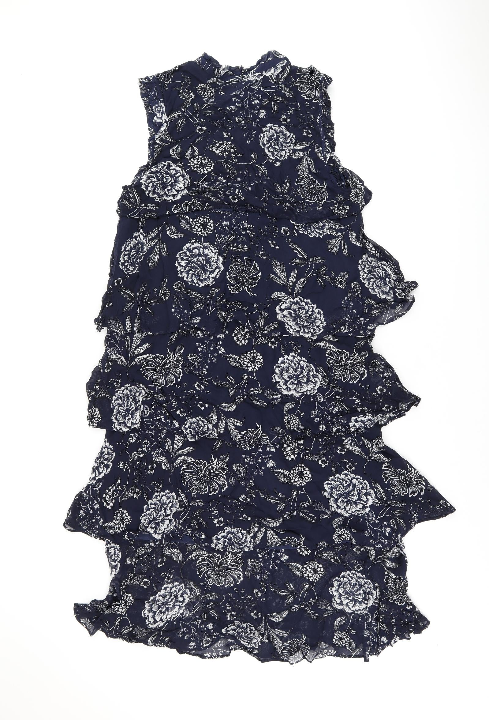 Part Two Womens Blue Floral Viscose Shift Size 10 Round Neck Zip - Frill Detail