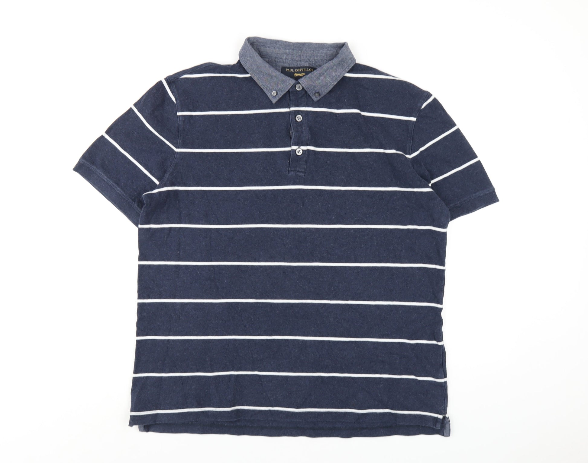 Paul Costelloe Mens Blue Striped Cotton Polo Size XL Collared Button