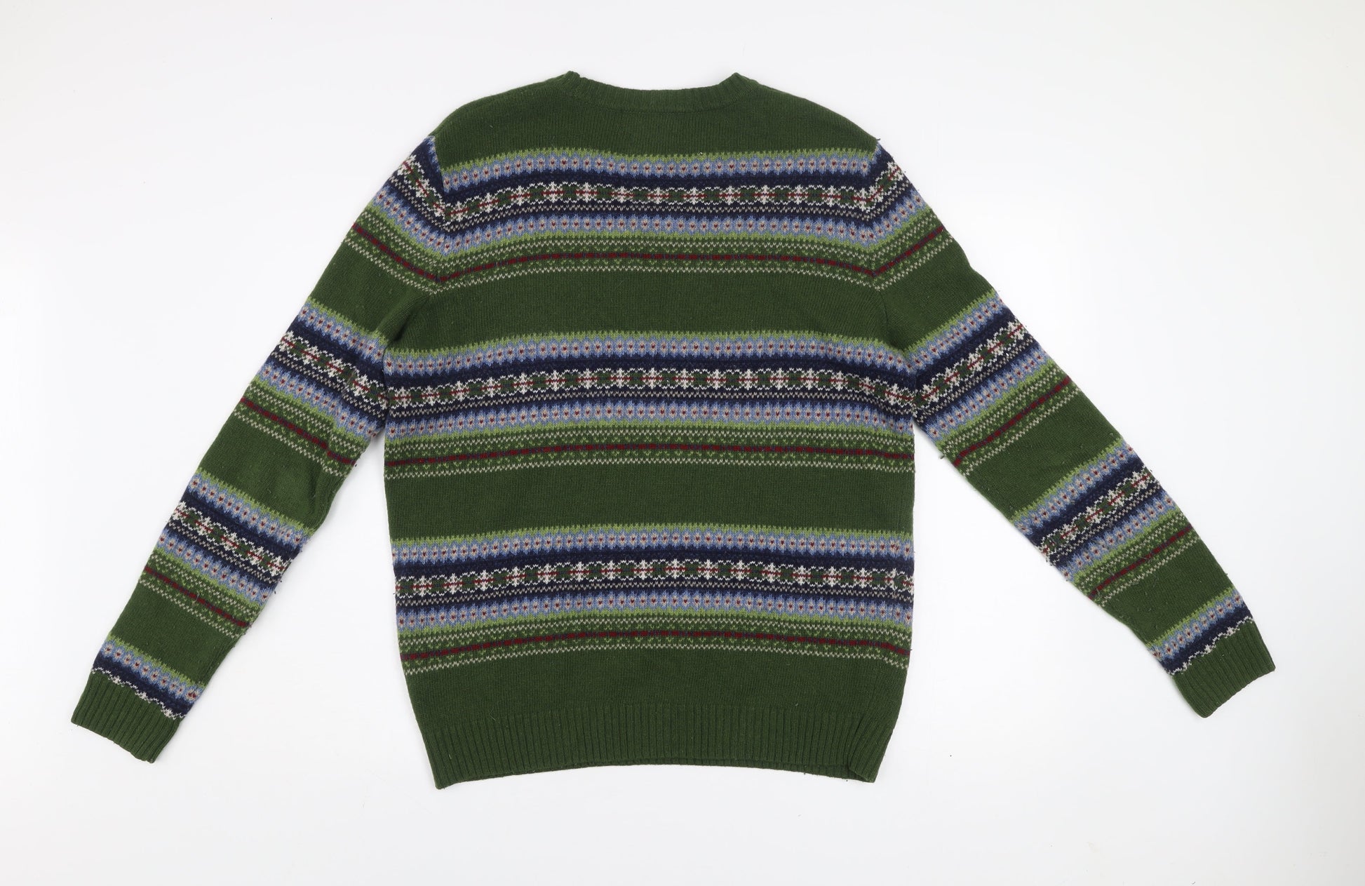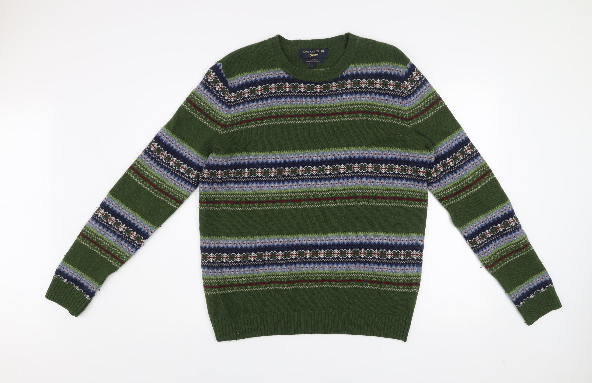 Paul Costelloe Men's Green Fair Isle Lambswool Blend Jumper M