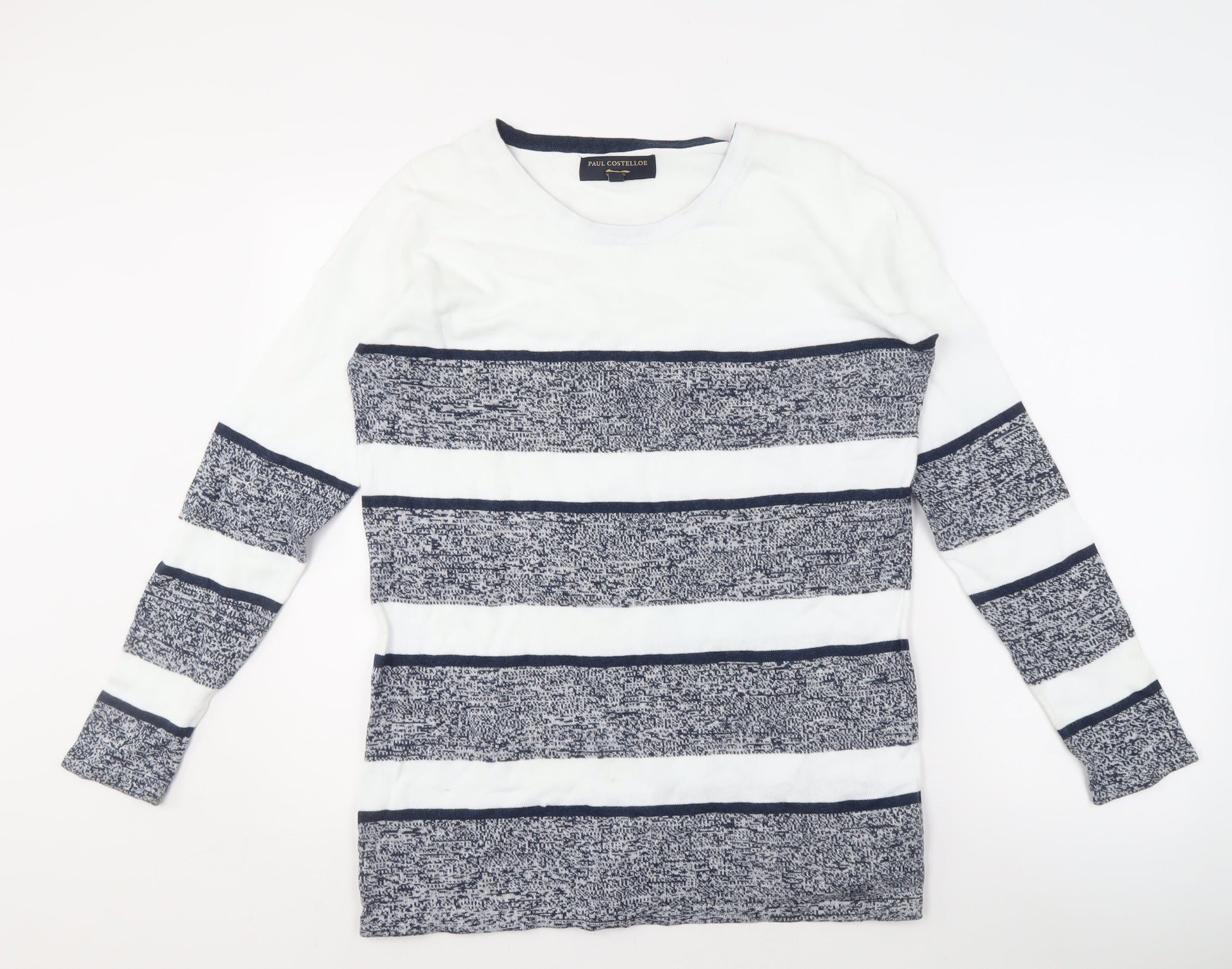 Paul Costelloe Men's L White Striped Pullover Jumper