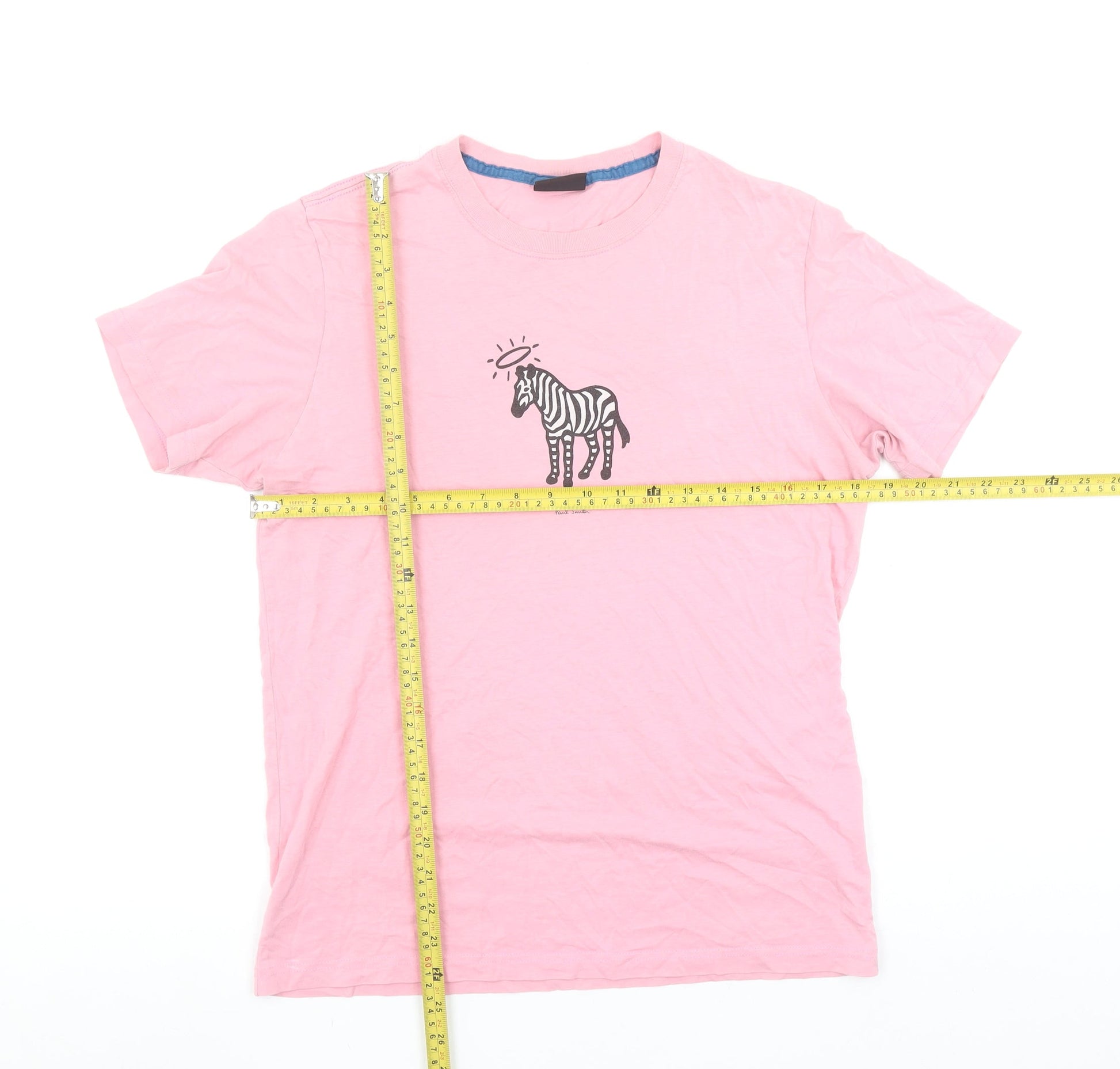 Paul Smith Men Pink Zebra Graphic Crew Neck Cotton T-Shirt Size S