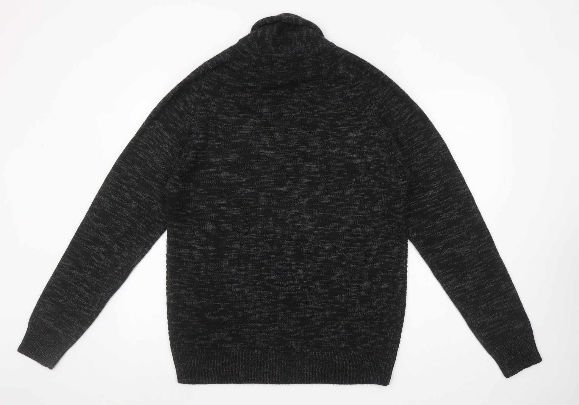 Peacocks Men's Black Cable-Knit Shawl Collar Jumper Size L
