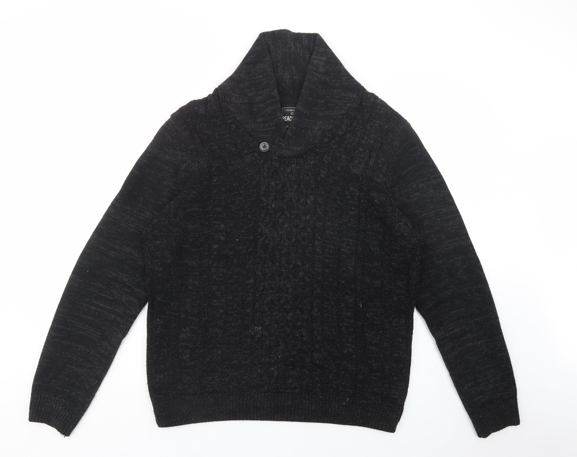 Peacocks Mens Black Collared Acrylic Pullover Jumper Size M