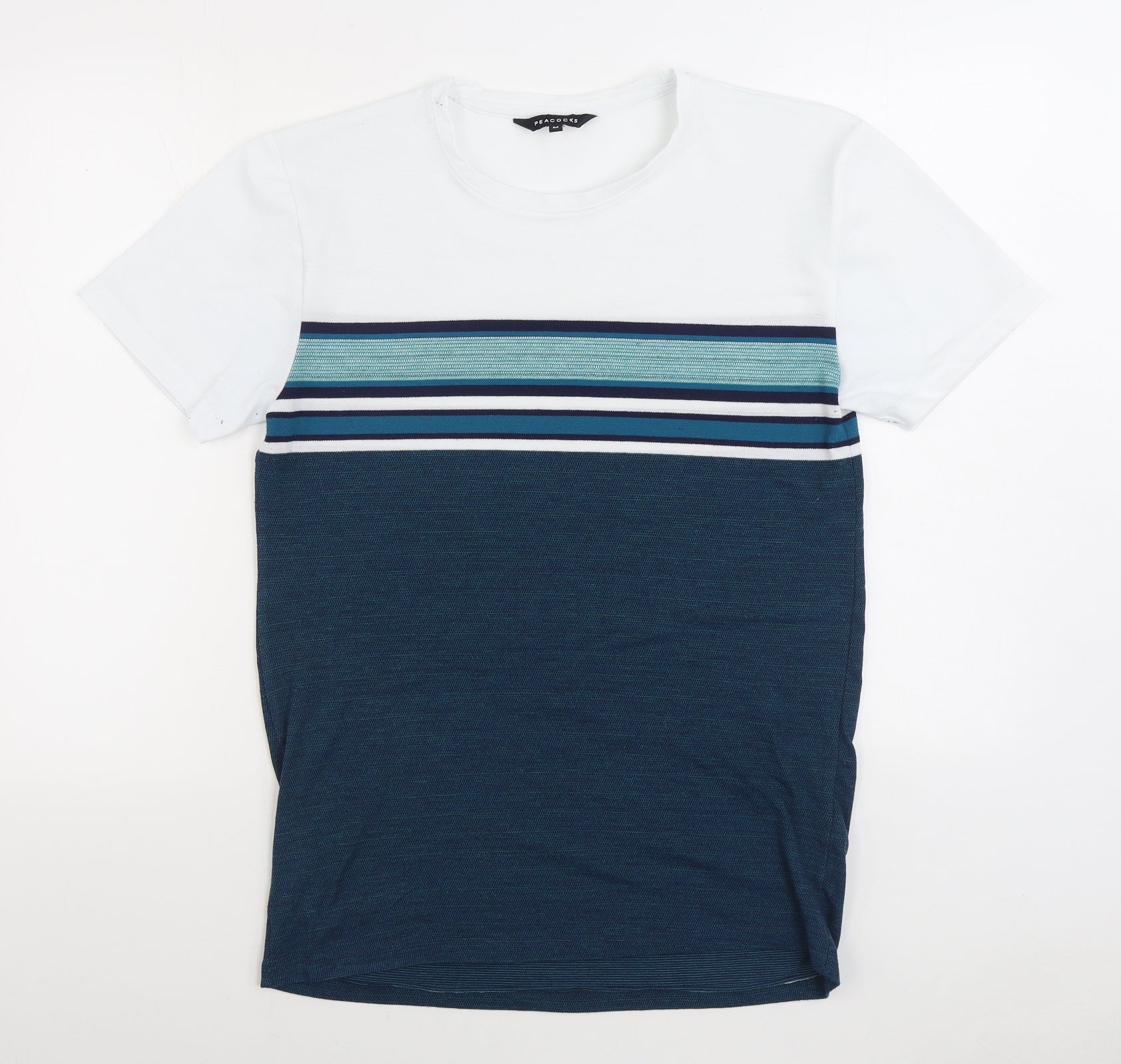 Peacocks Mens Blue Striped Cotton T-Shirt Size M Round Neck