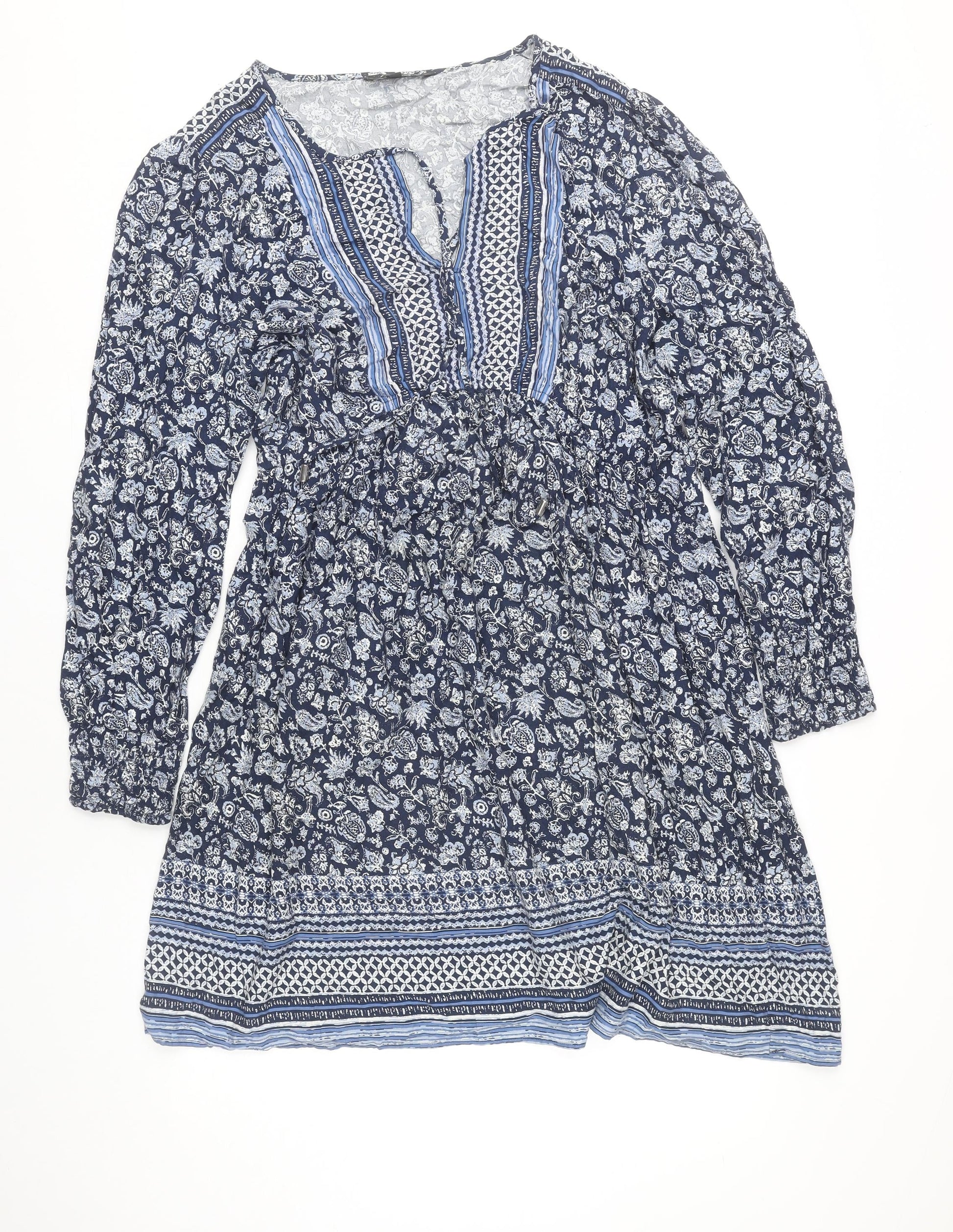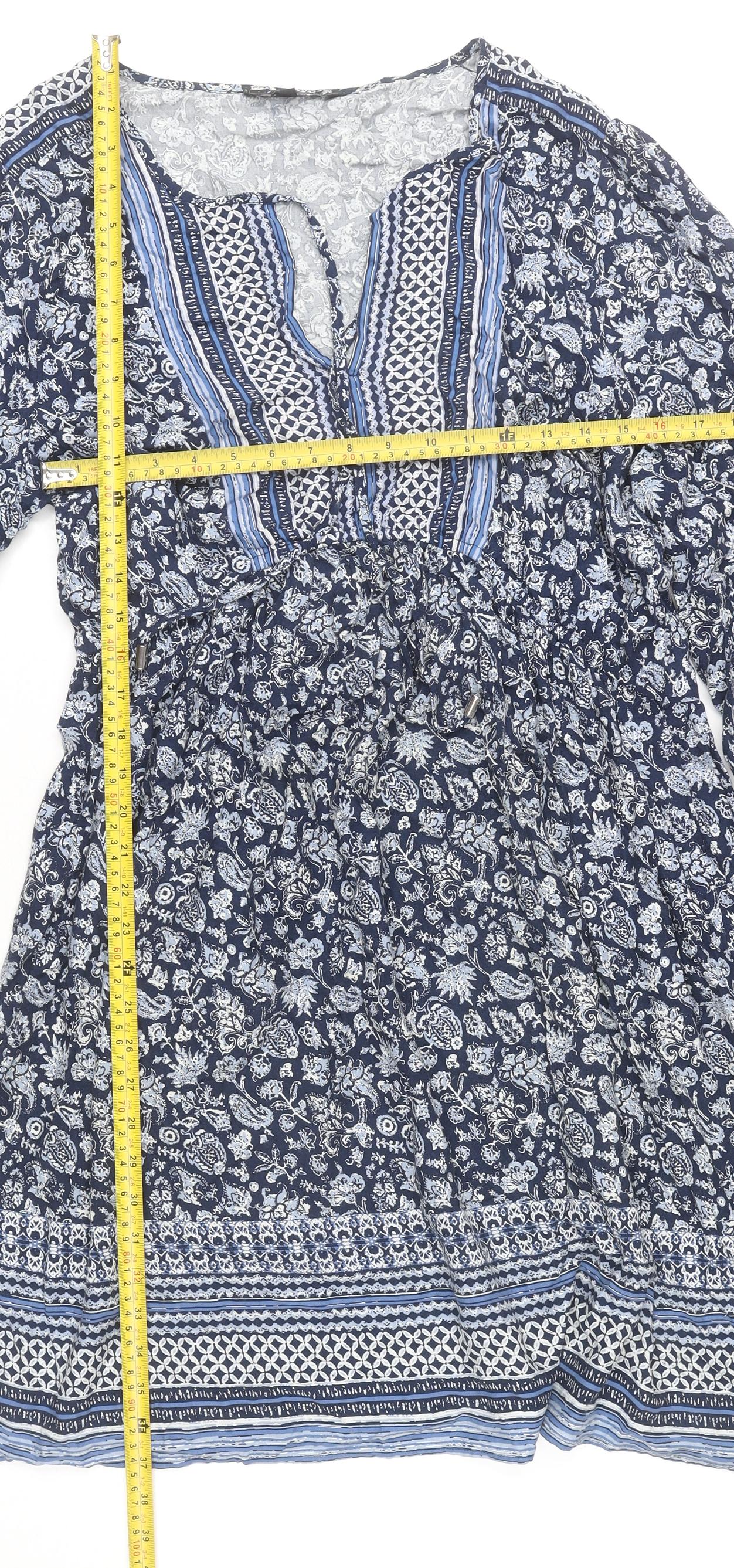 Peacocks Women’s Blue Floral Bohemian Knee Length Dress Size 18