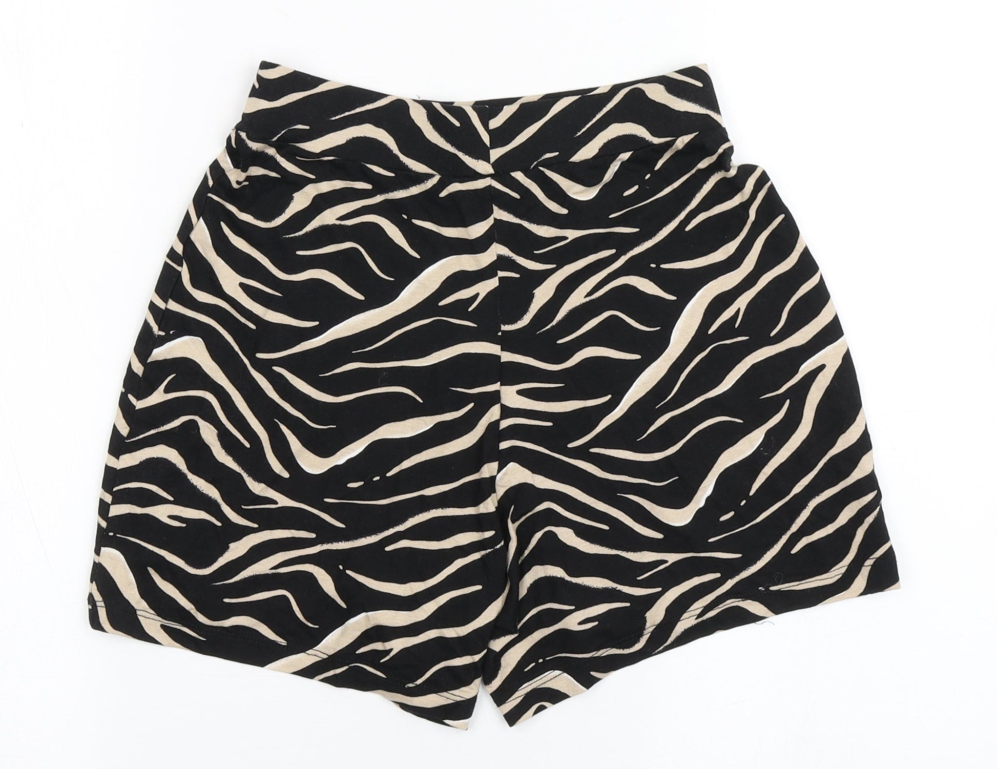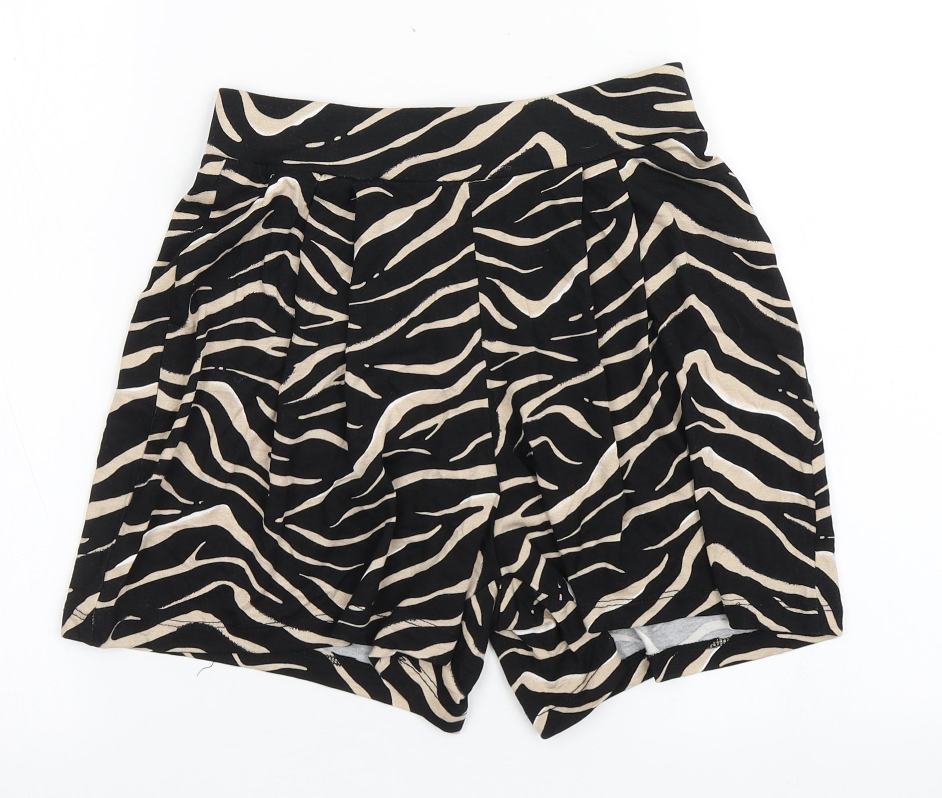 Peacocks Womens Black Animal Print Viscose Sailor Shorts Size 8 Regular Pull On