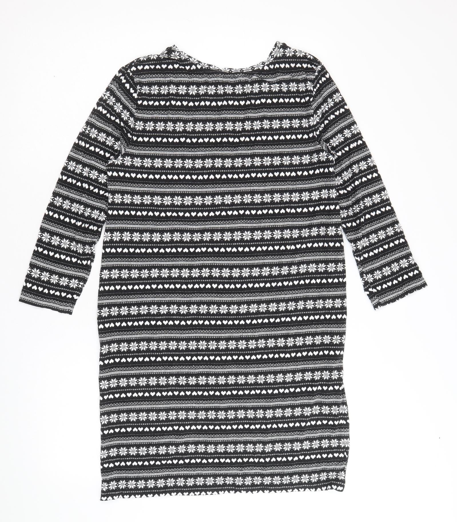 Peacocks Womens Black Fair Isle Viscose A-Line Size 12 Round Neck Pullover