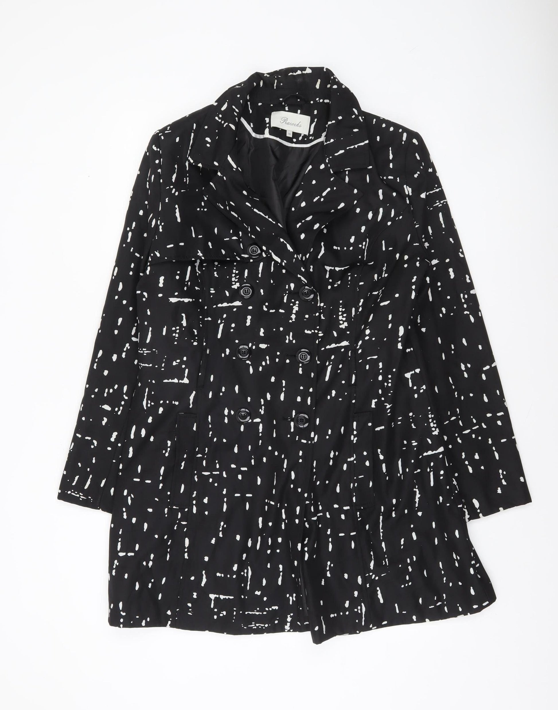 Peacocks Women's Black White Patterned Trench Coat Size 16