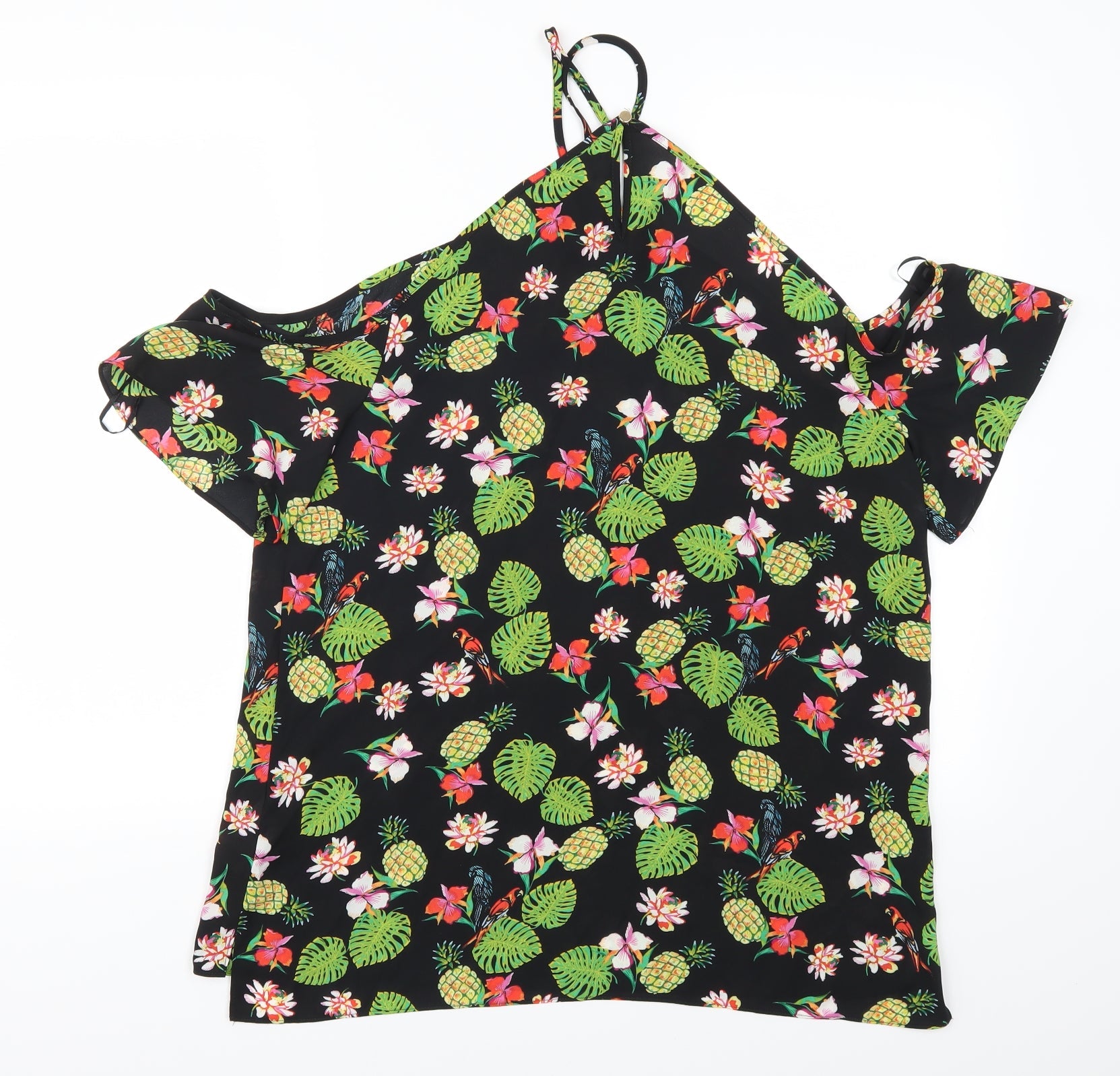 Peacocks Womens Green Geometric Basic Blouse Size 16 - Birds Pineapples Leaves