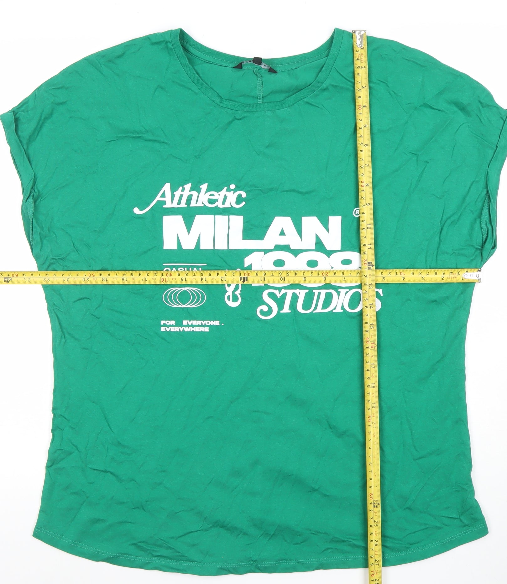 Peacocks Women's Green Size 18 Crew Neck Cotton T-Shirt