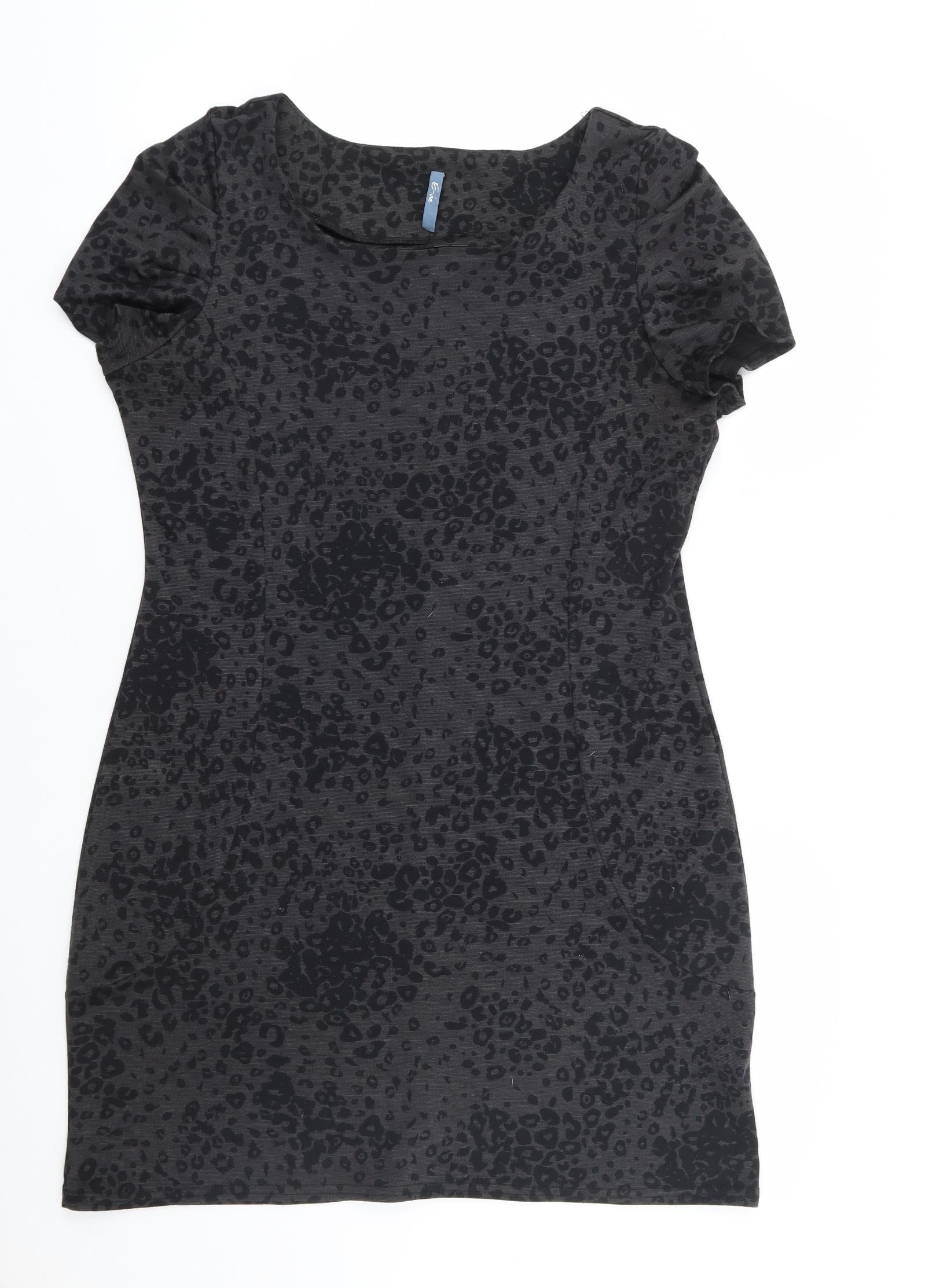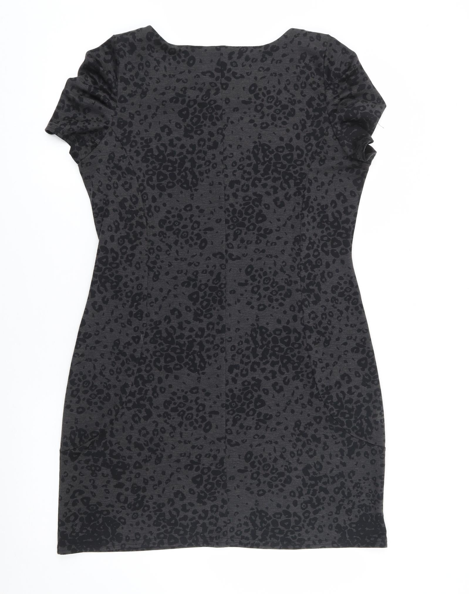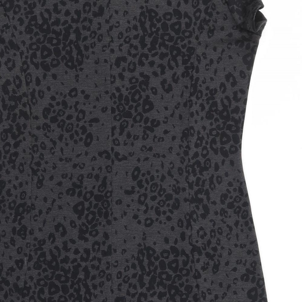 Peacocks Womens Grey Animal Print Polyester Shift Size 14 Boat Neck Pullover