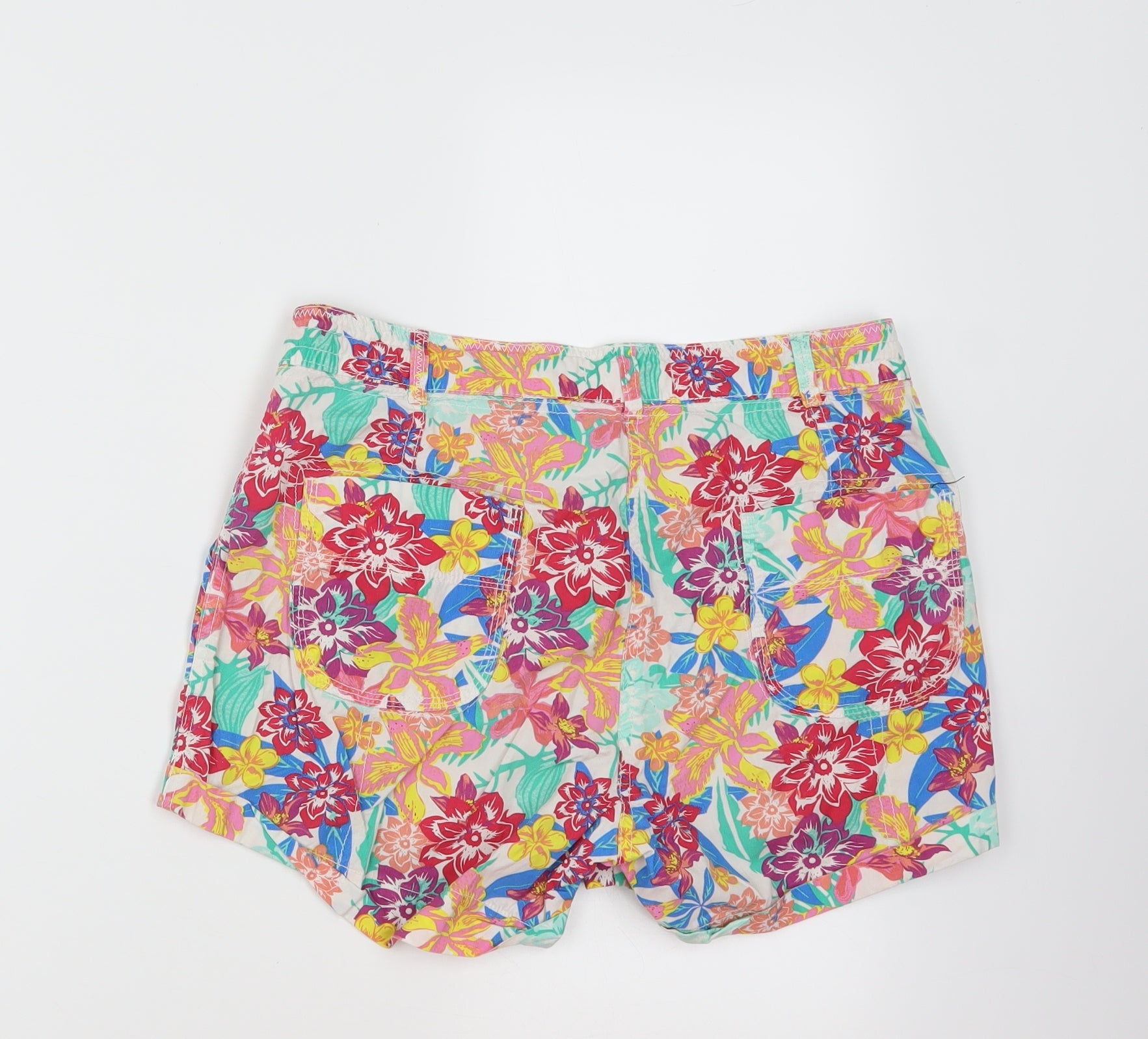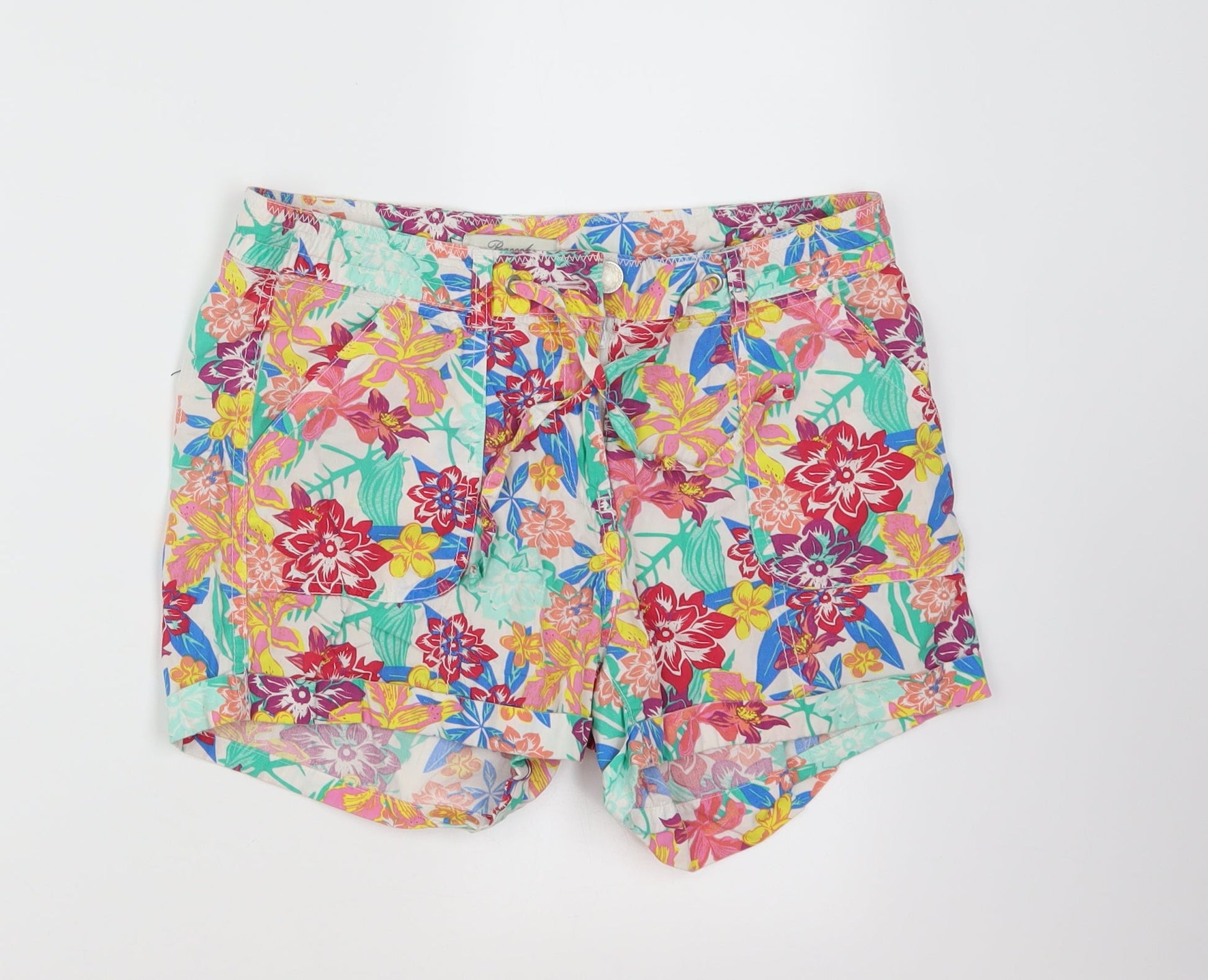 Peacocks Womens White Floral Paperbag Shorts Size 8