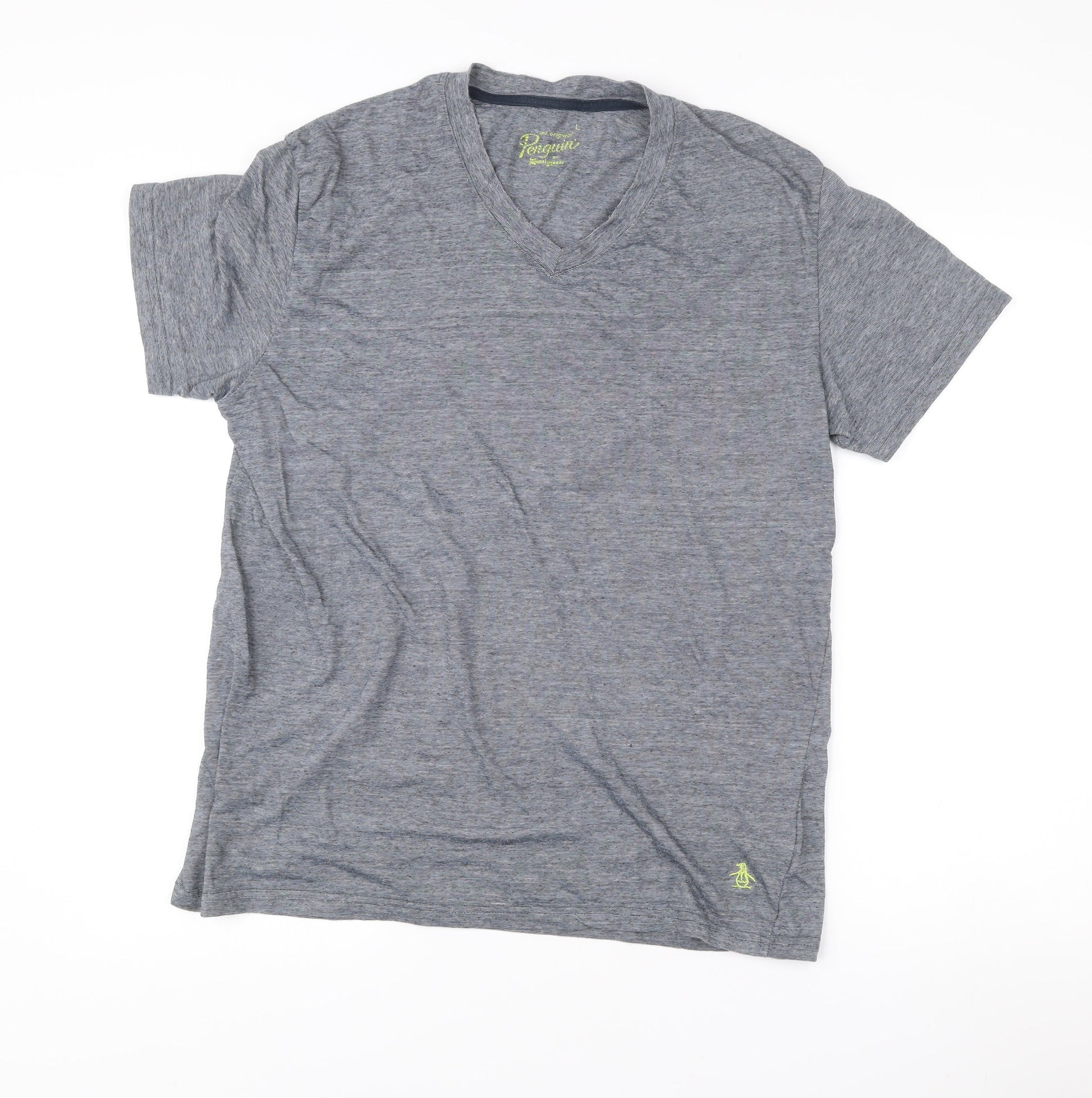 Penguin by Munsingwear Mens Grey L V-Neck Short Sleeve T-Shirt