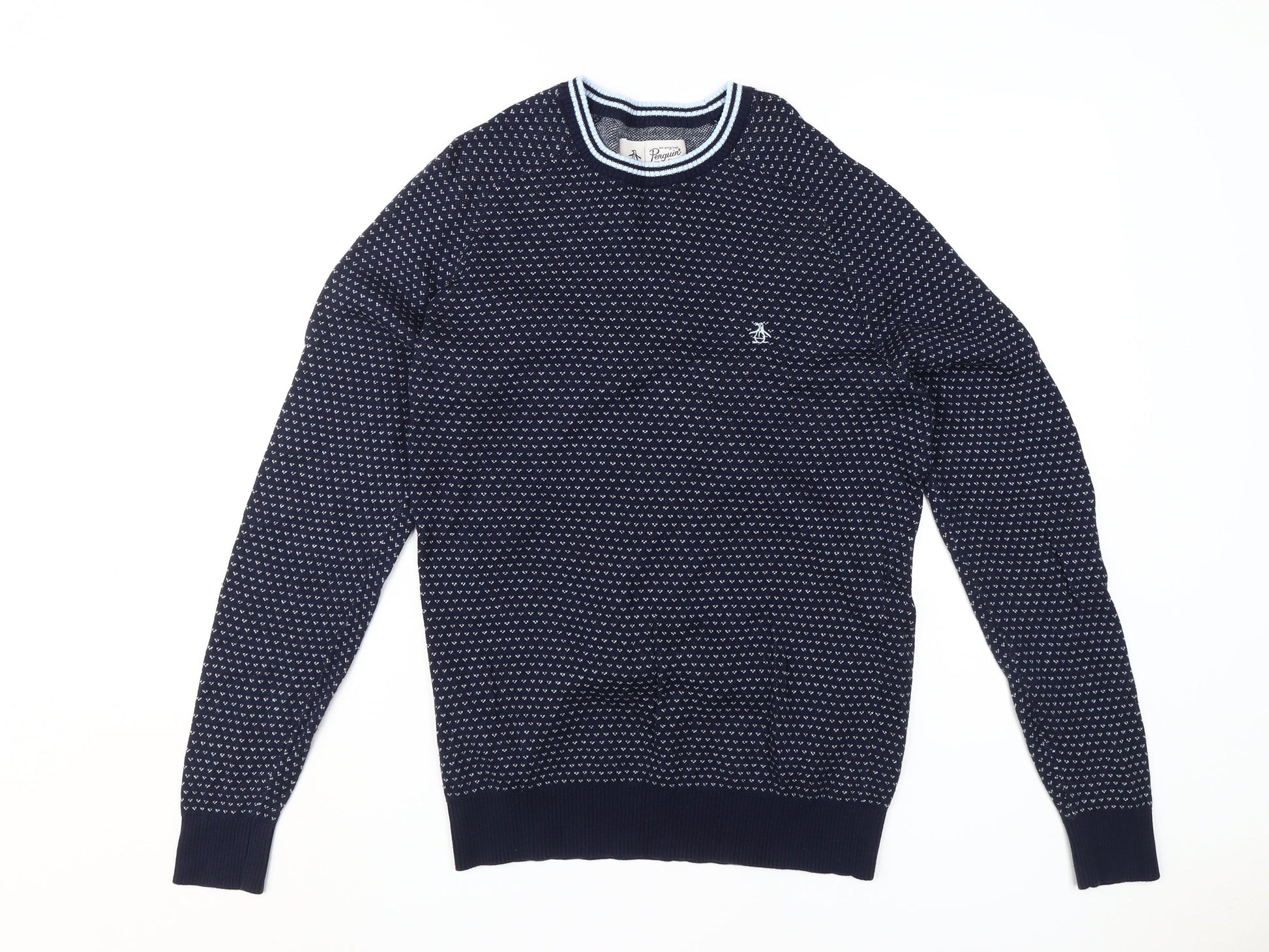 Penguin Men's Blue Crew Neck Pullover Jumper, Size M