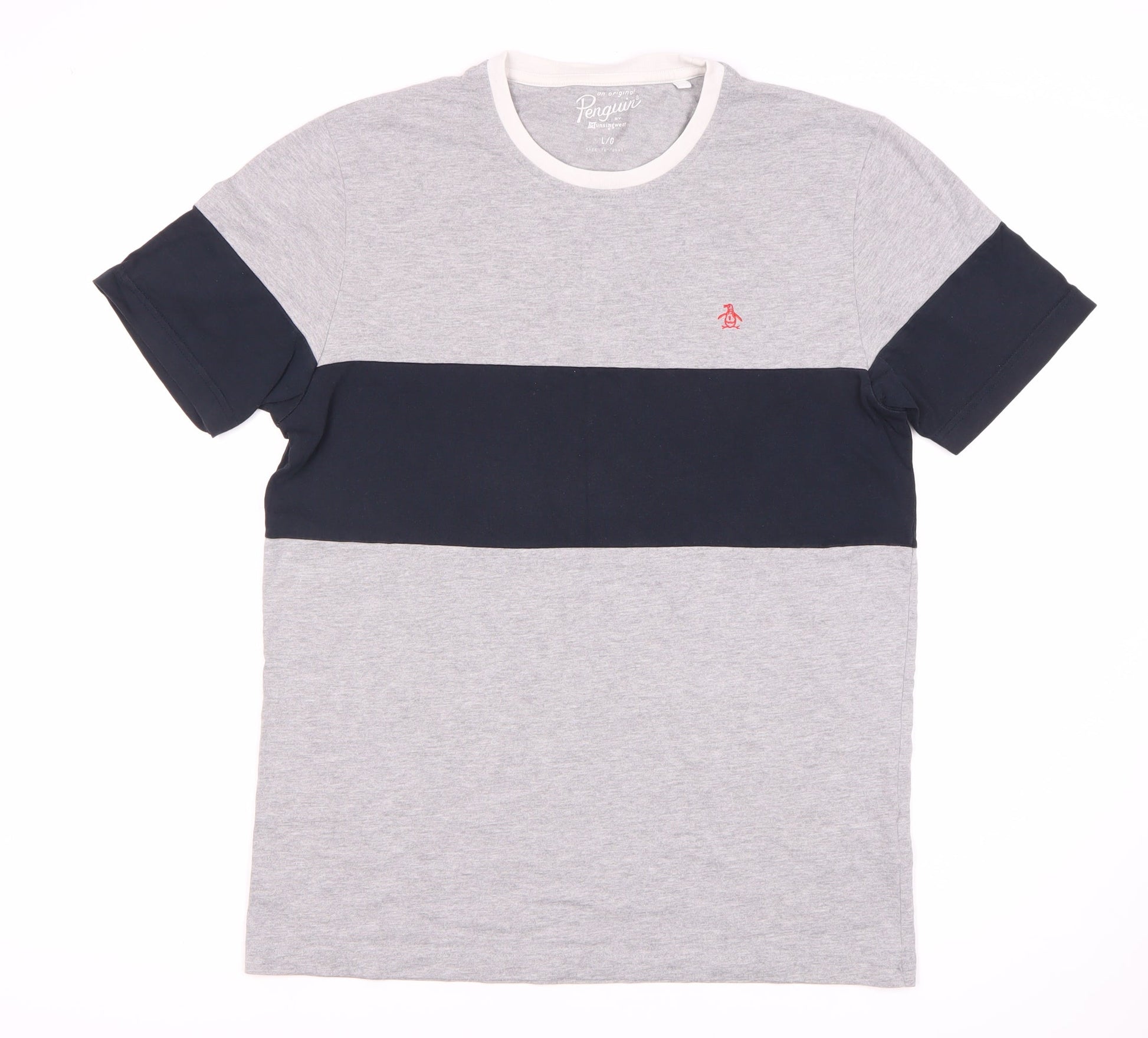 Penguin Men's Grey Colourblock T-Shirt, Size L