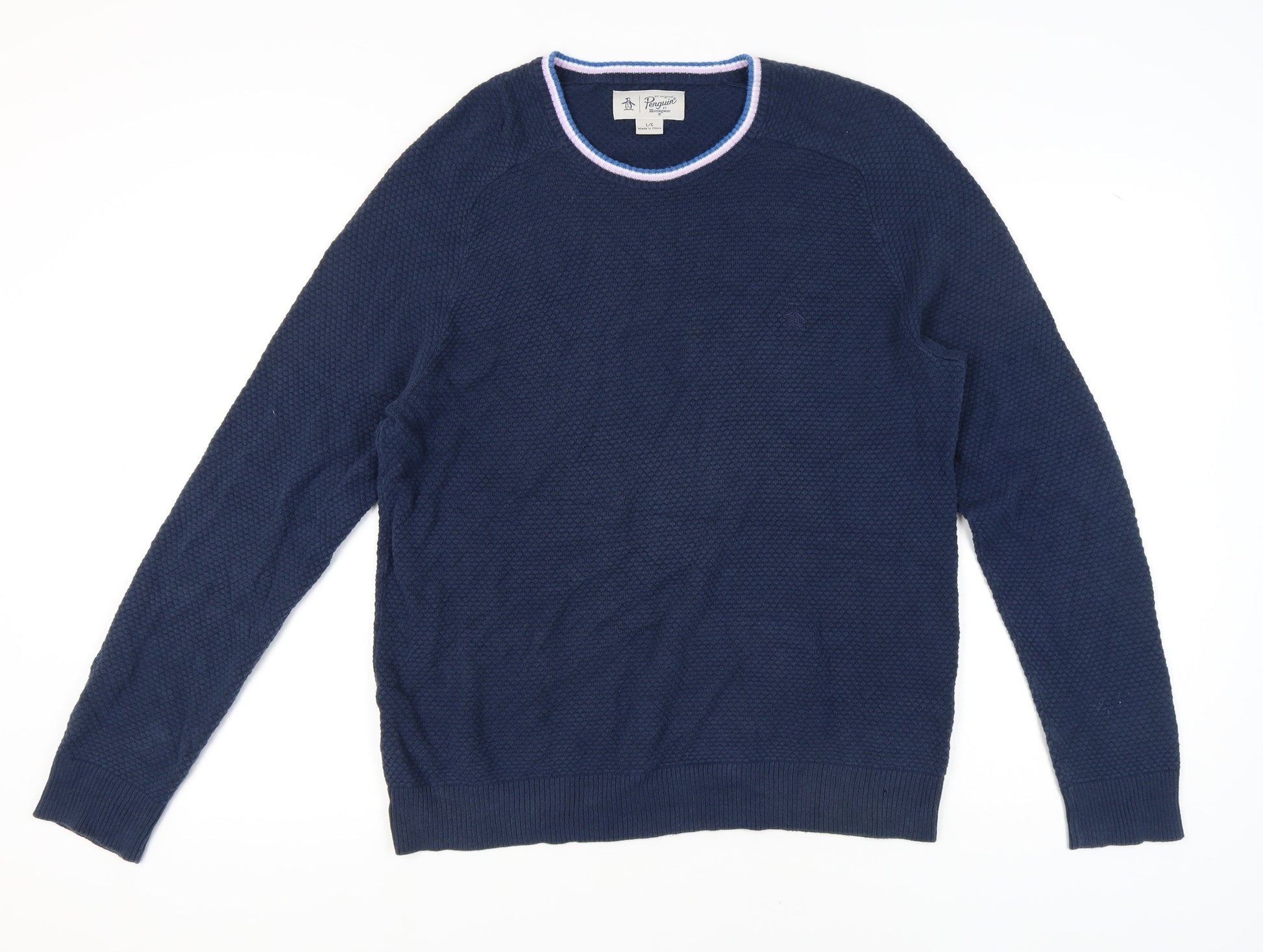 Penguin Men's Large Blue Waffle-Knit Pullover Jumper
