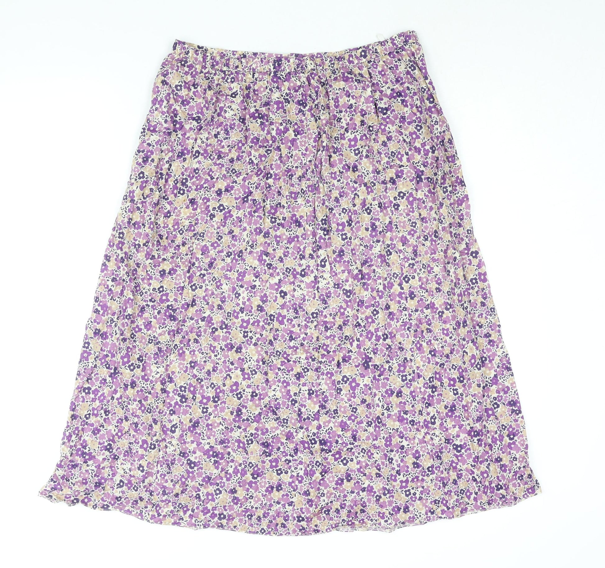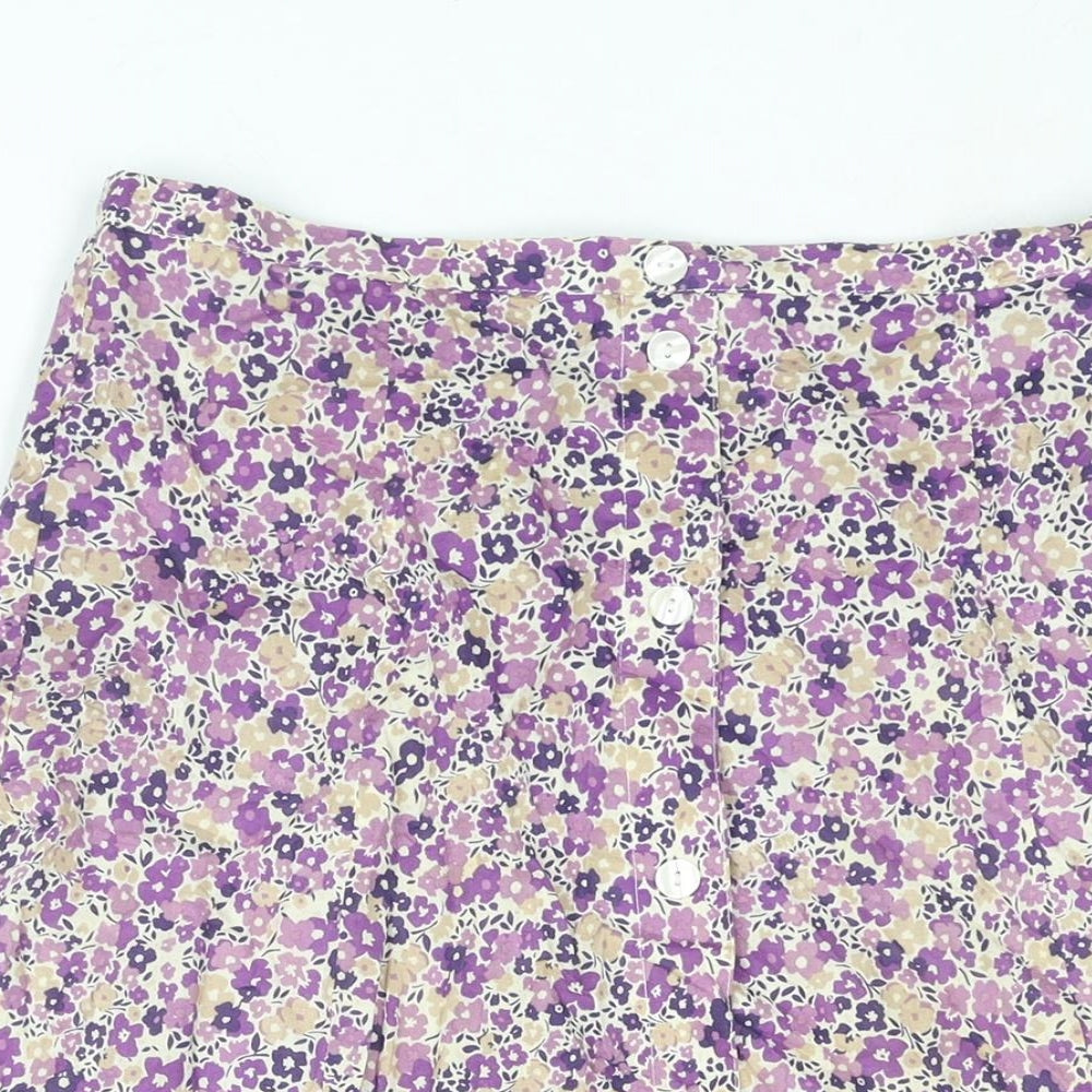Penny Plain Womens Purple Floral Polyester A-Line Skirt Size 10 - Button Detail