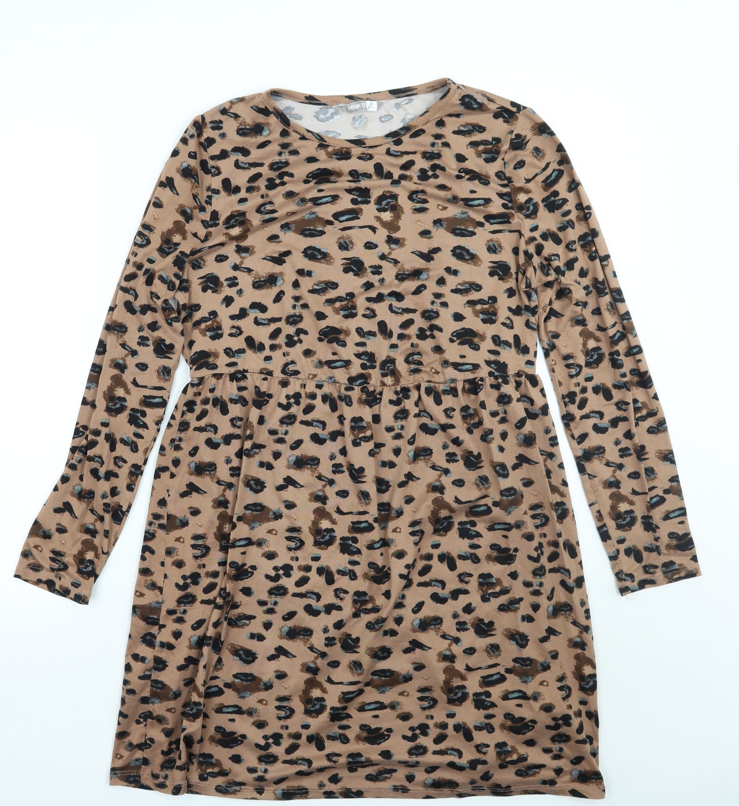 Pep&co Womens Brown Animal Print A-Line Size 10