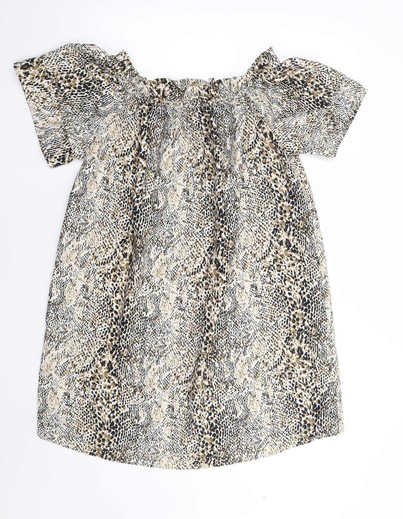 Pep&Co Womens Brown Animal Print Polyester Shift Size 8 Off the Shoulder Pullover