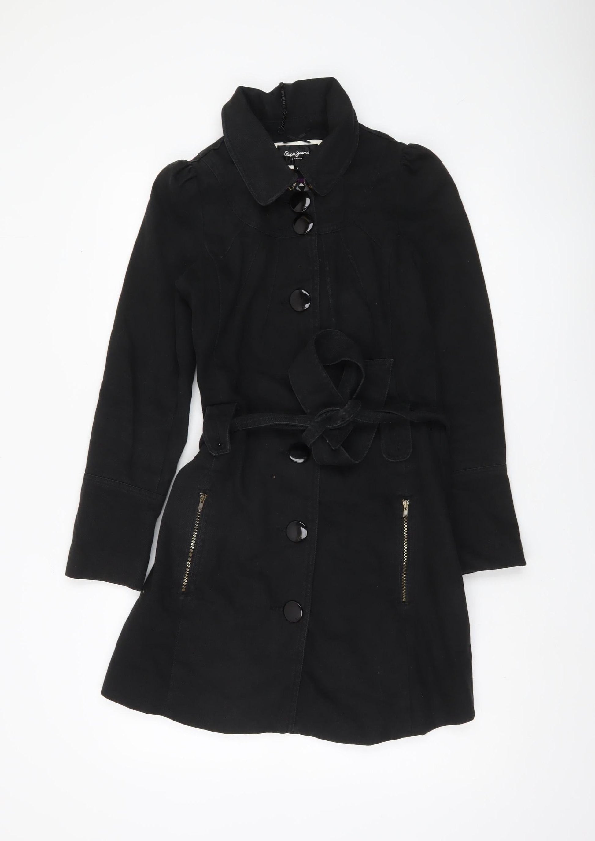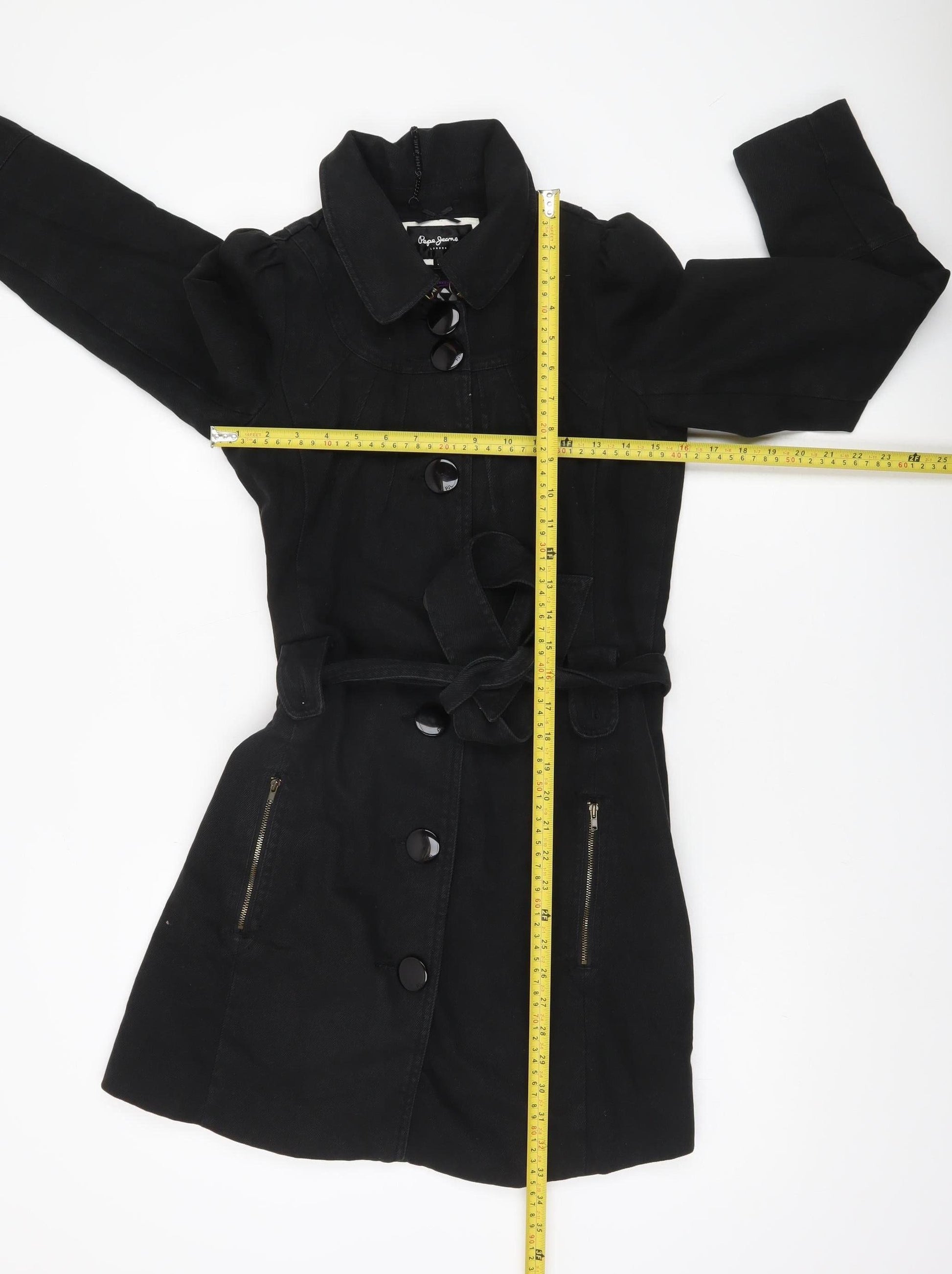 Pepe Jeans Women’s Black Trench Coat Size S Cotton Belted