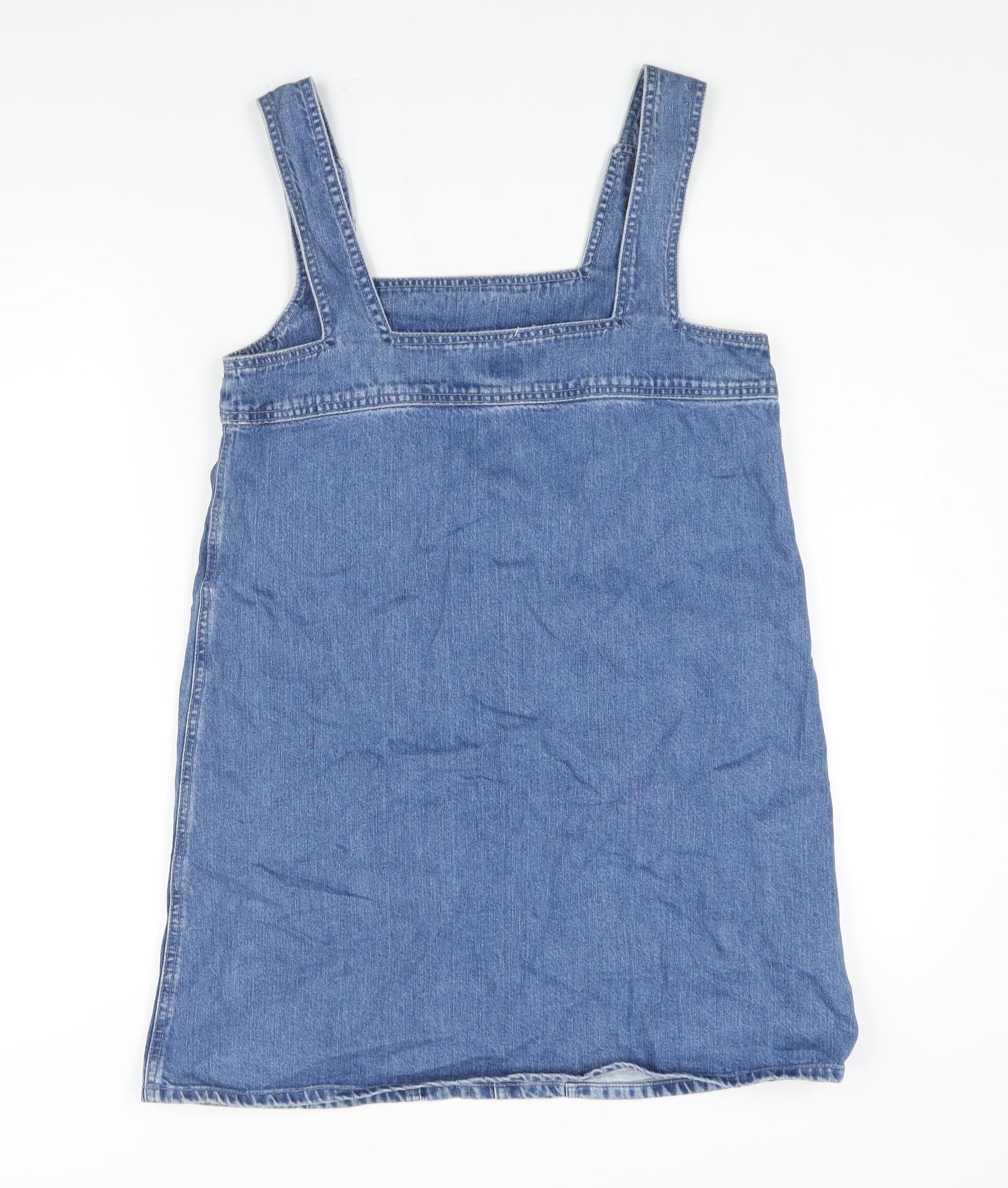 Pepe Jeans Womens Blue Cotton Pinafore/Dungaree Dress Size S Square Neck Snap