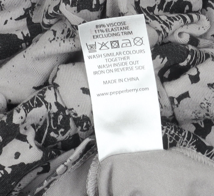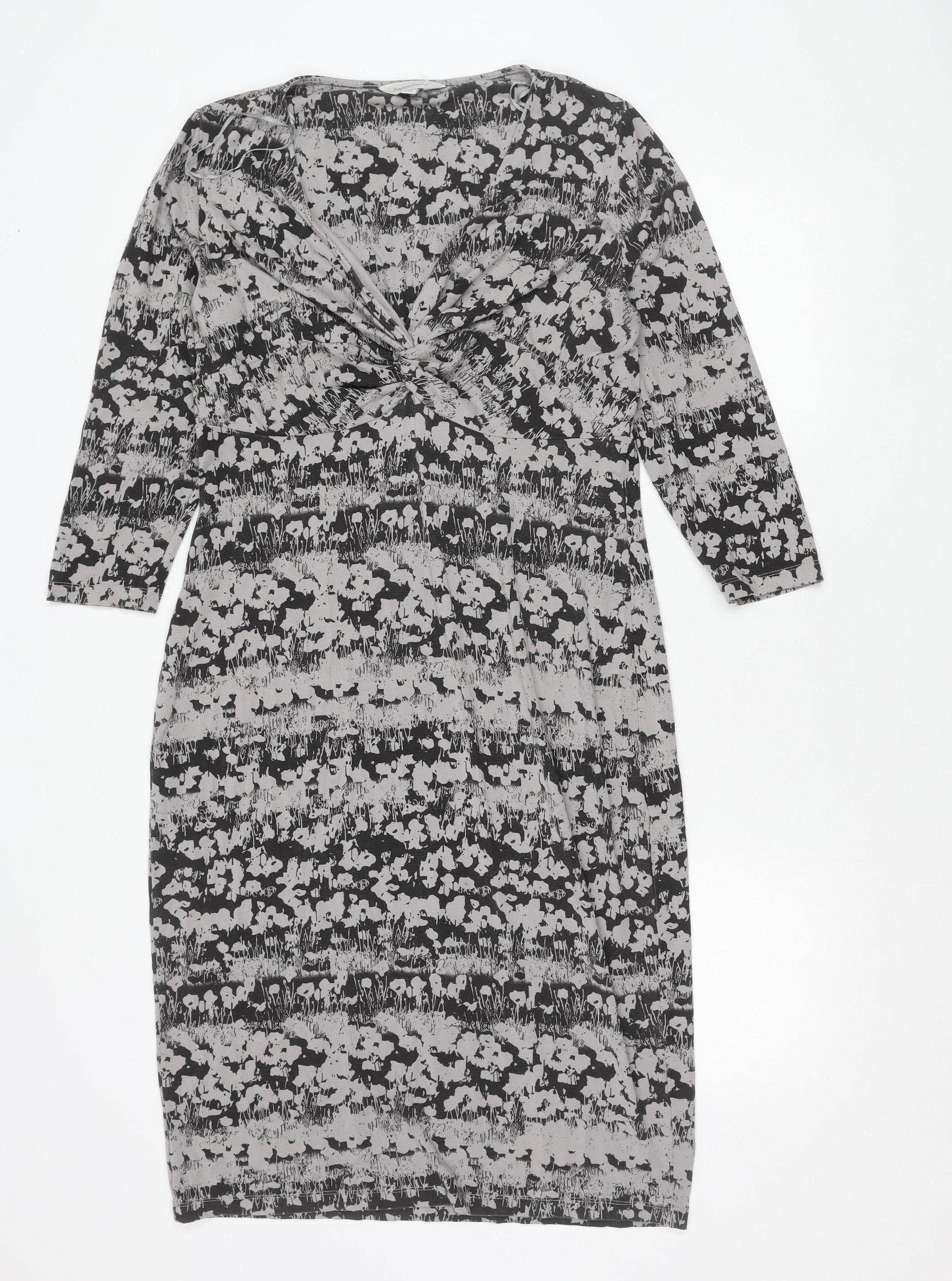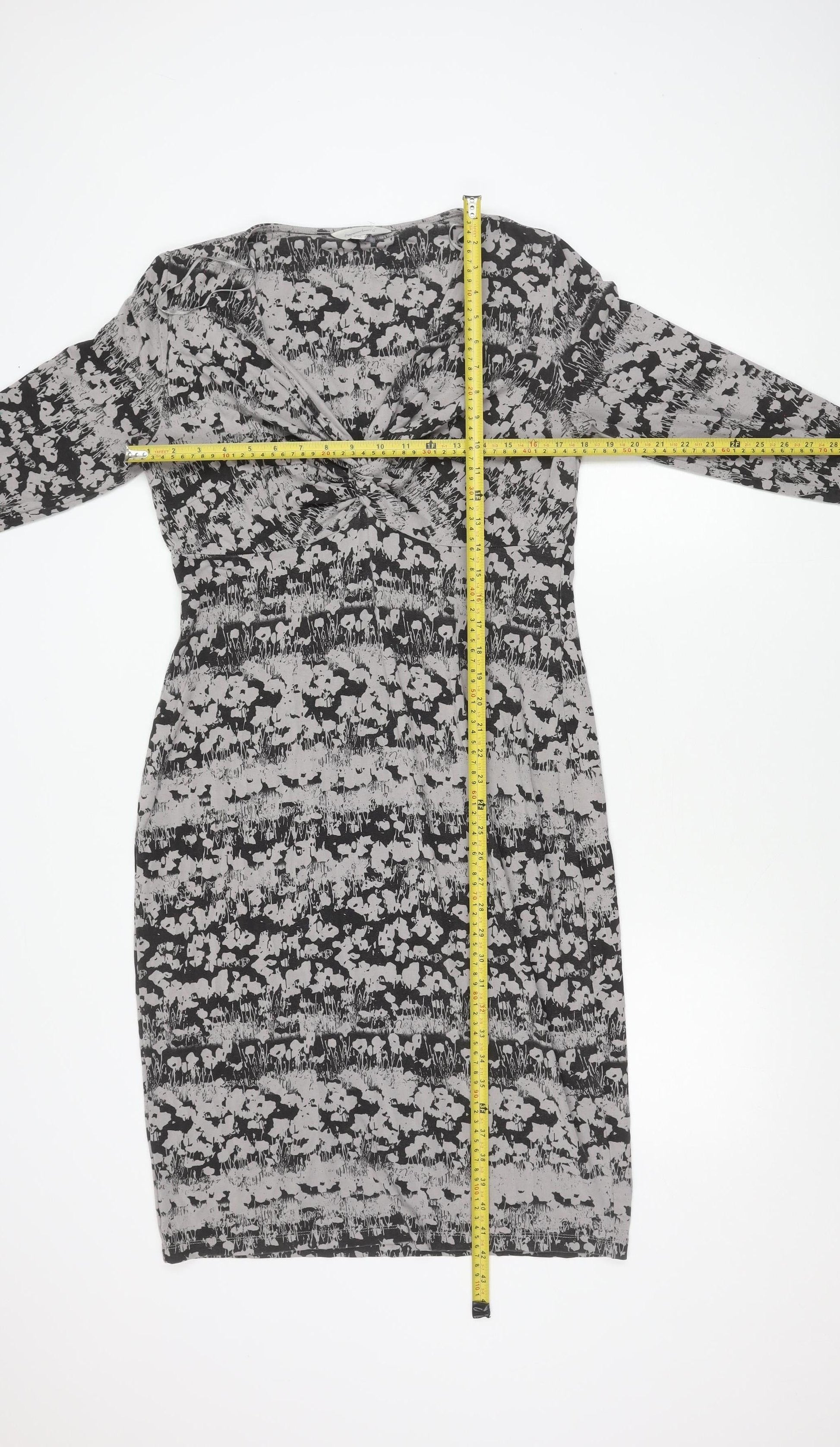 Pepperberry Womens Black Grey Bodycon Dress Size 14 Long Sleeve V-Neck