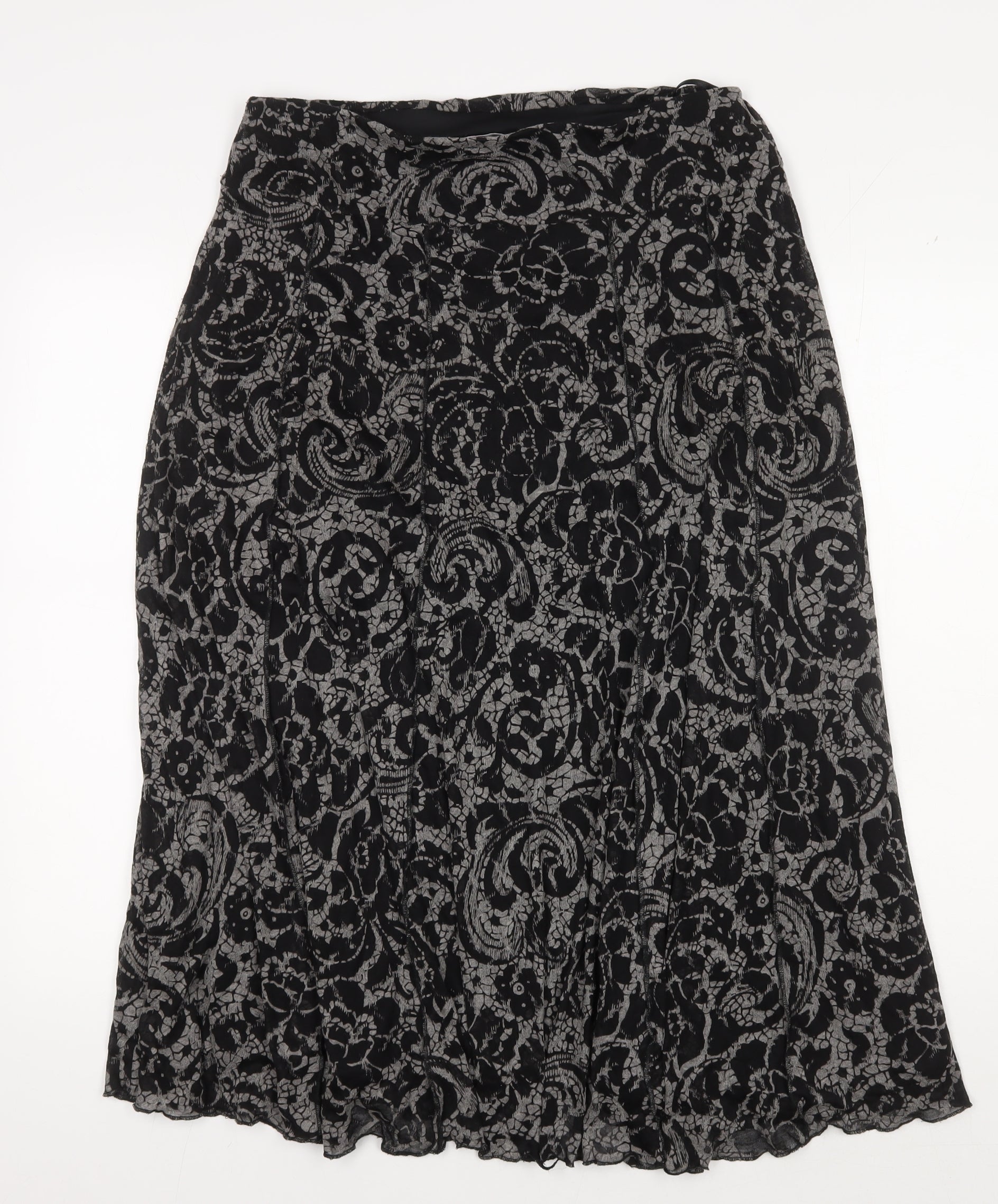 Per Una Women's Black Floral Pleated Midi Skirt, Size 14