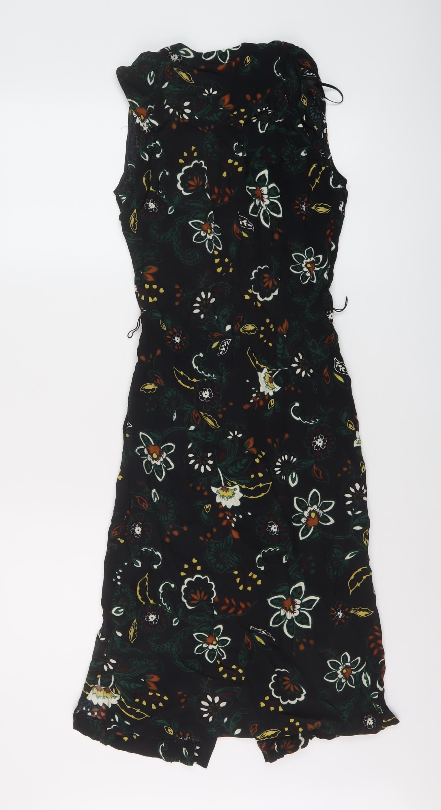 Per Una Womens Black Floral Viscose A-Line Size 8 V-Neck Button