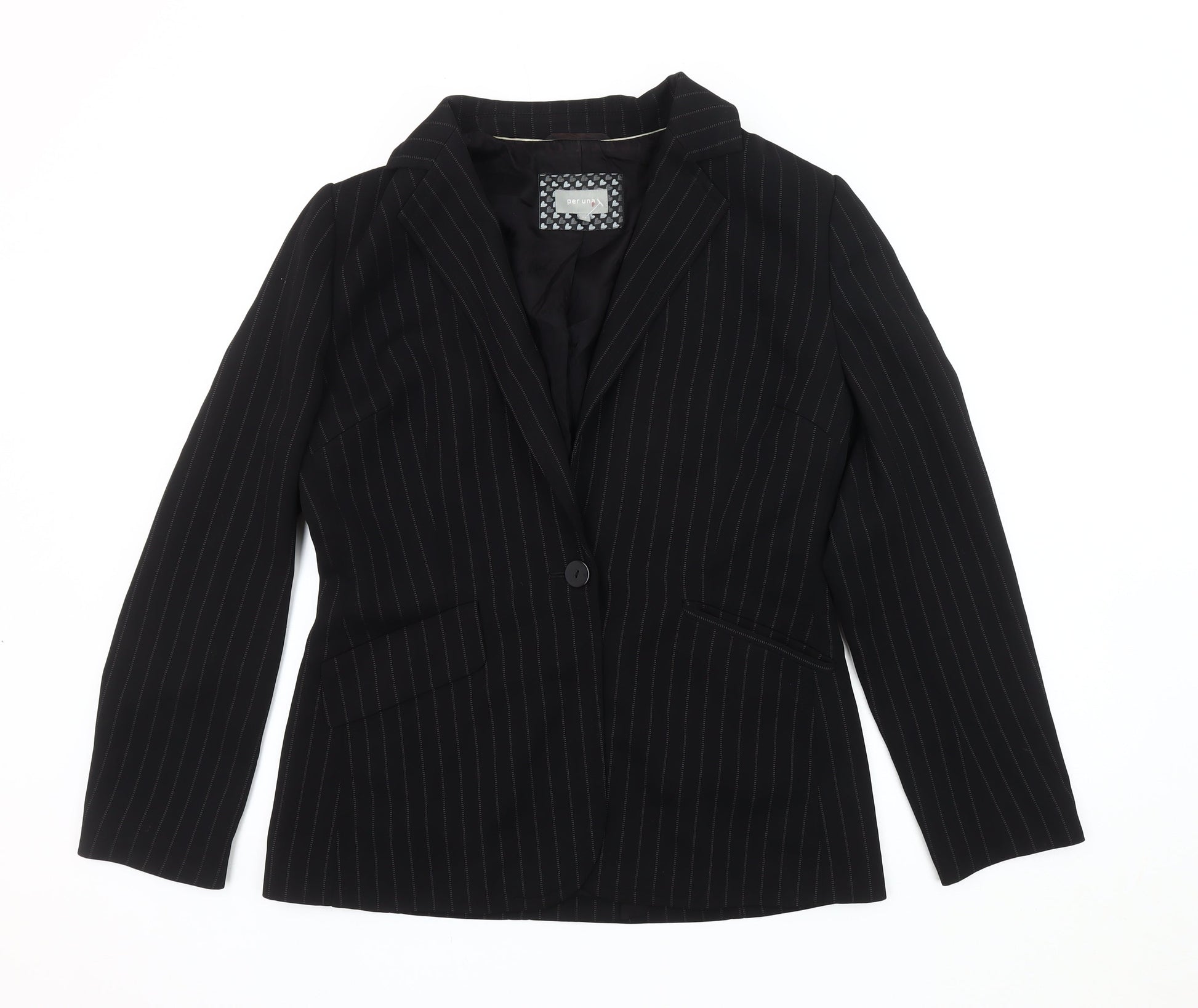 Per Una Women's Black Pinstripe Suit Jacket - Size 12