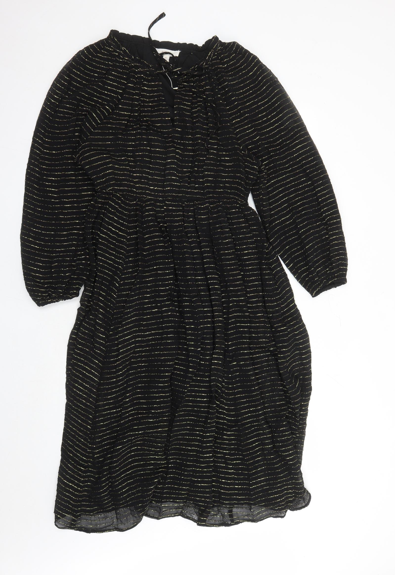 Per Una Womens Black Striped Viscose A-Line Size 10 Round Neck Pullover - Lined