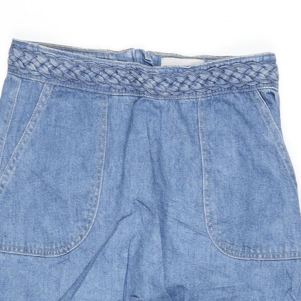 Per Una Womens Blue Cotton A-Line Skirt Size 30 in Zip - Raw Hem