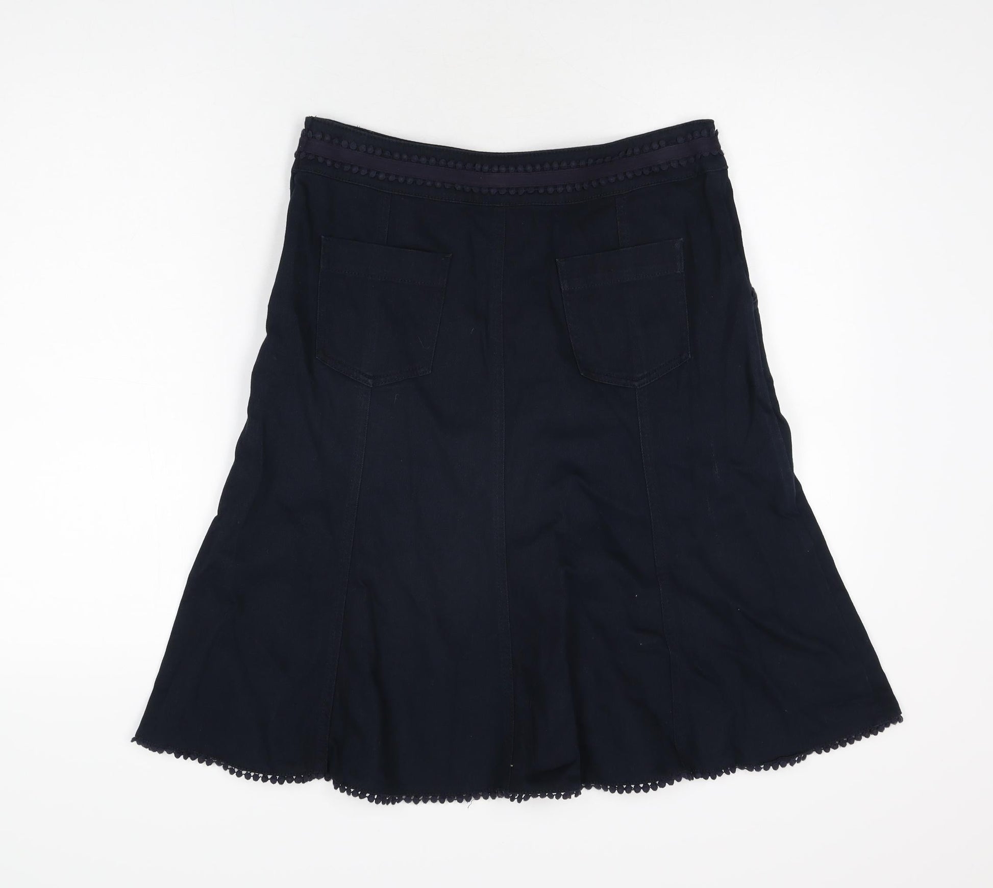Per Una Womens Blue Cotton Flare Skirt Size 10 Zip
