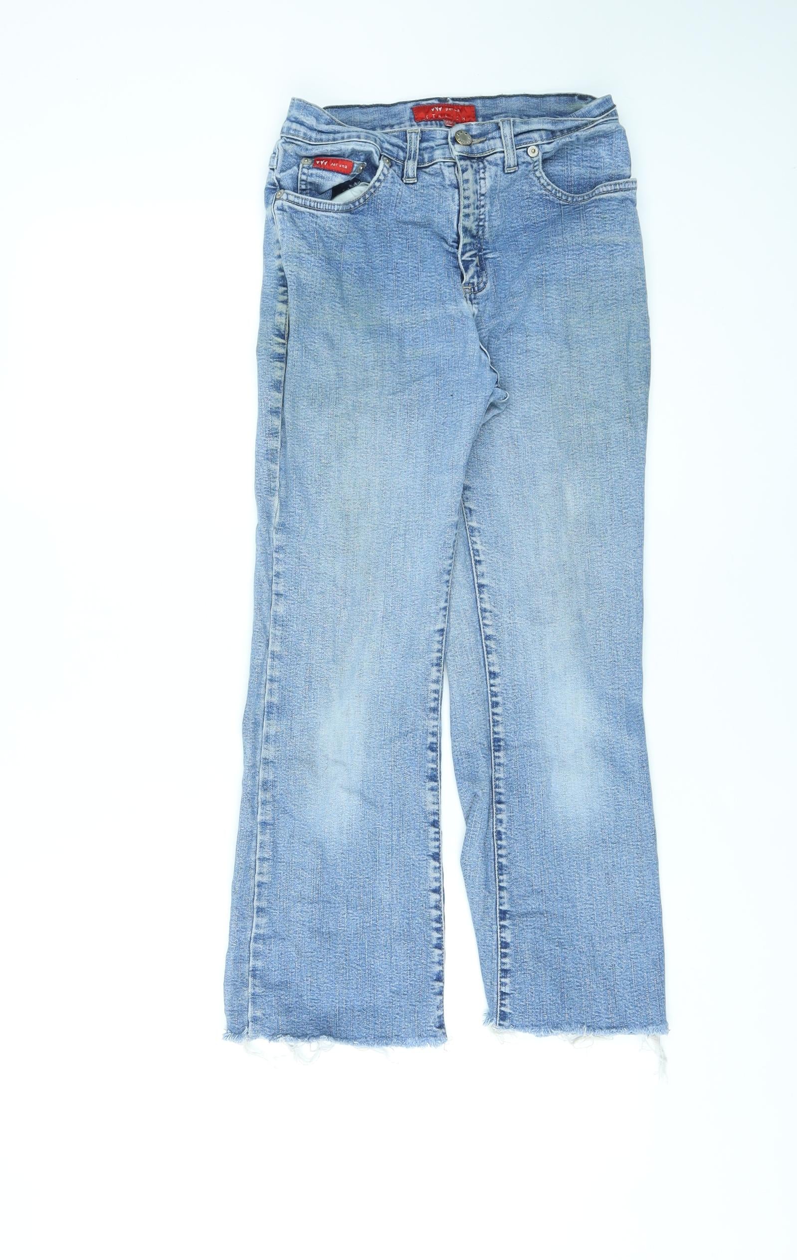 Per Una Womens Blue Cotton Straight Jeans Size 8 L23 in Regular Zip - Raw Hems