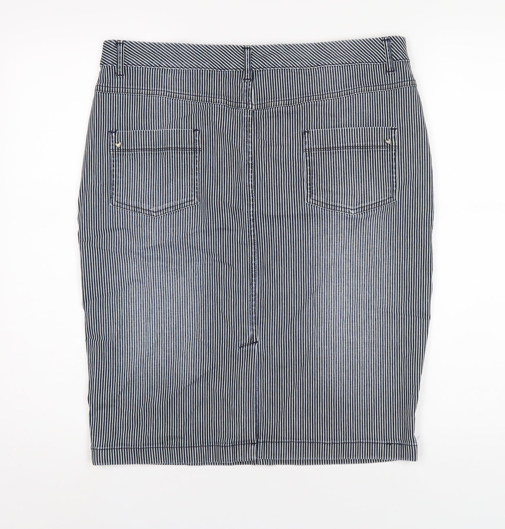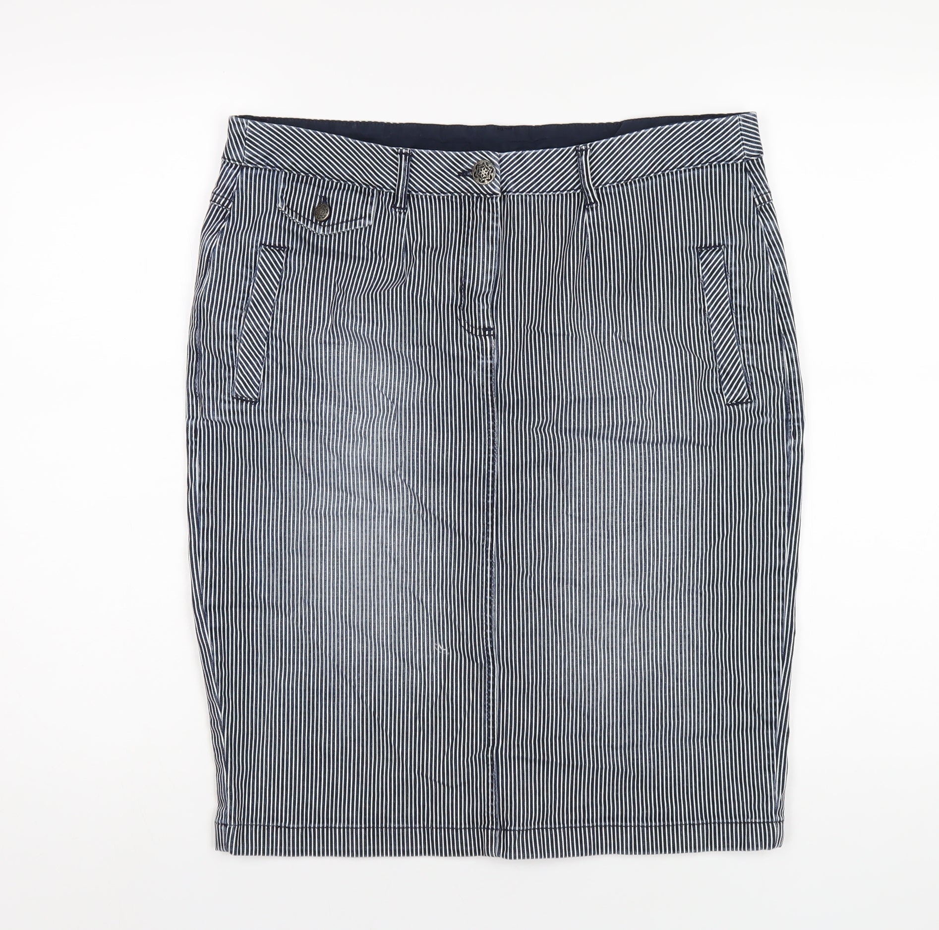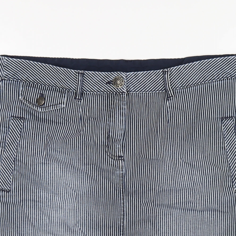 Per Una Womens Blue Striped Cotton Straight & Pencil Skirt Size 14 Zip
