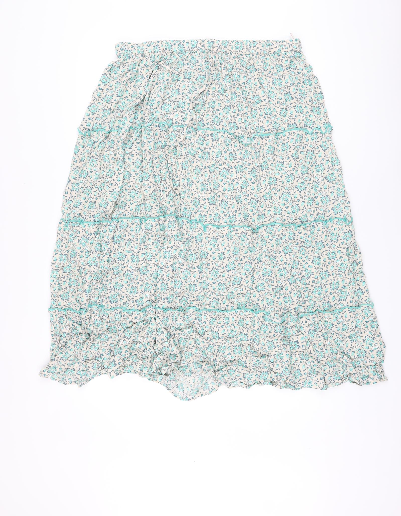 Per Una Womens Green Floral Viscose A-Line Skirt Size 16 Drawstring
