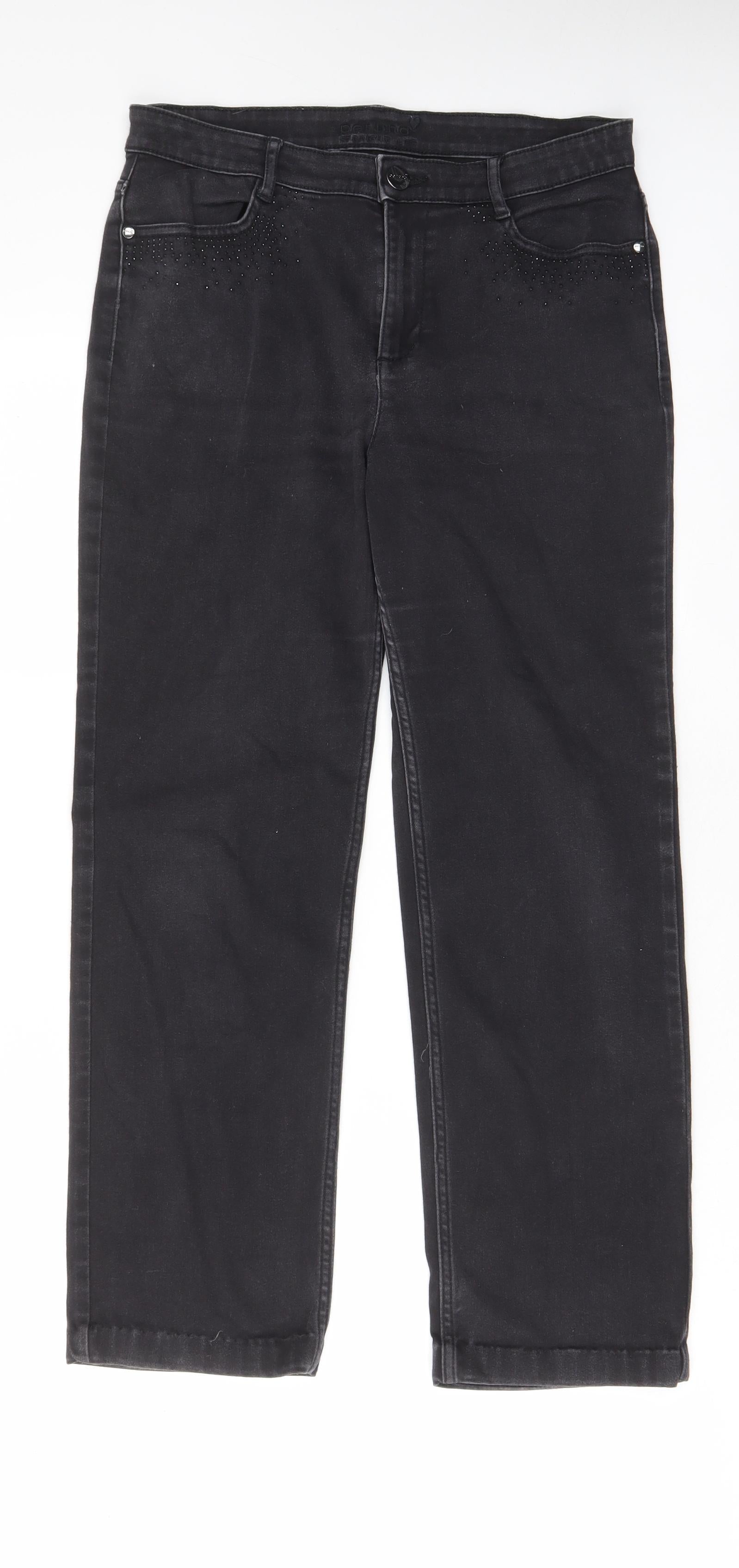 Per Una Womens Grey Cotton Straight Jeans Size 12 L27 in Regular Zip - Pockets, Studded