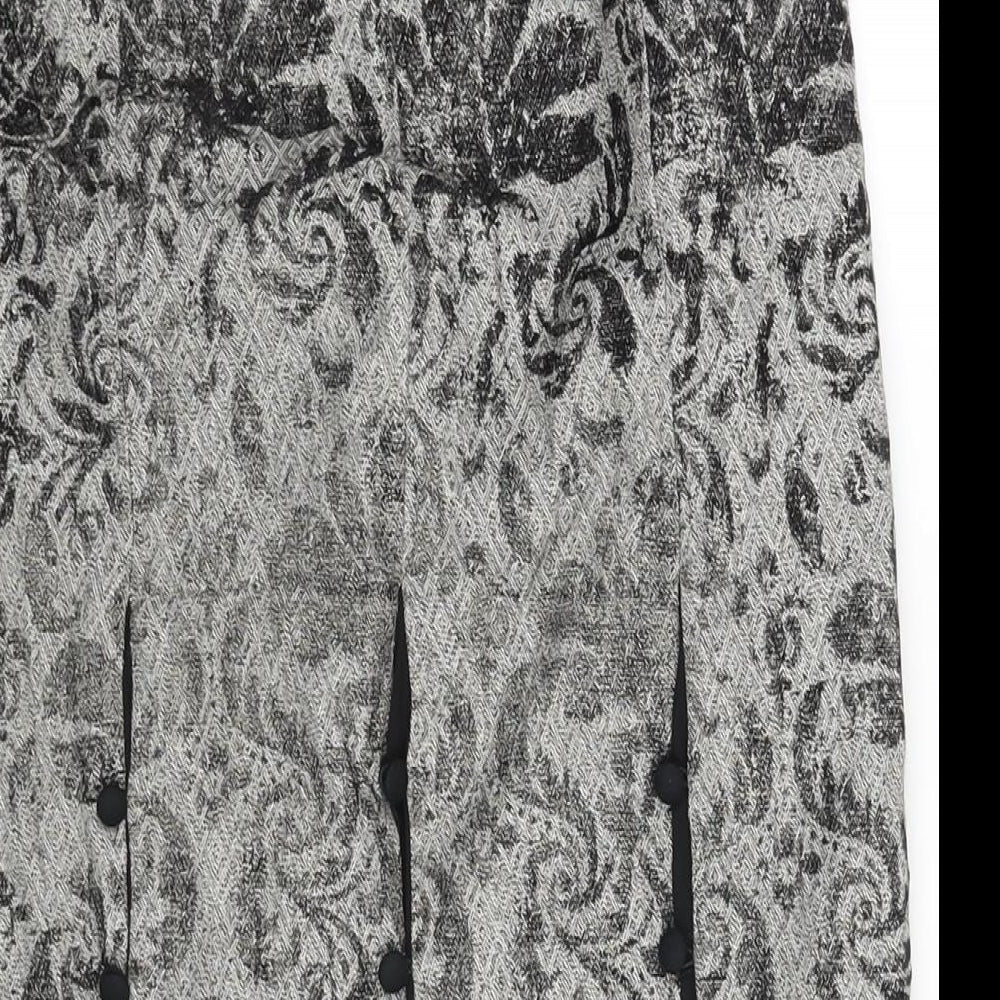 Per Una Womens Grey Geometric Polyester Straight & Pencil Skirt Size 8 Zip - Buttoned Pleat Detail