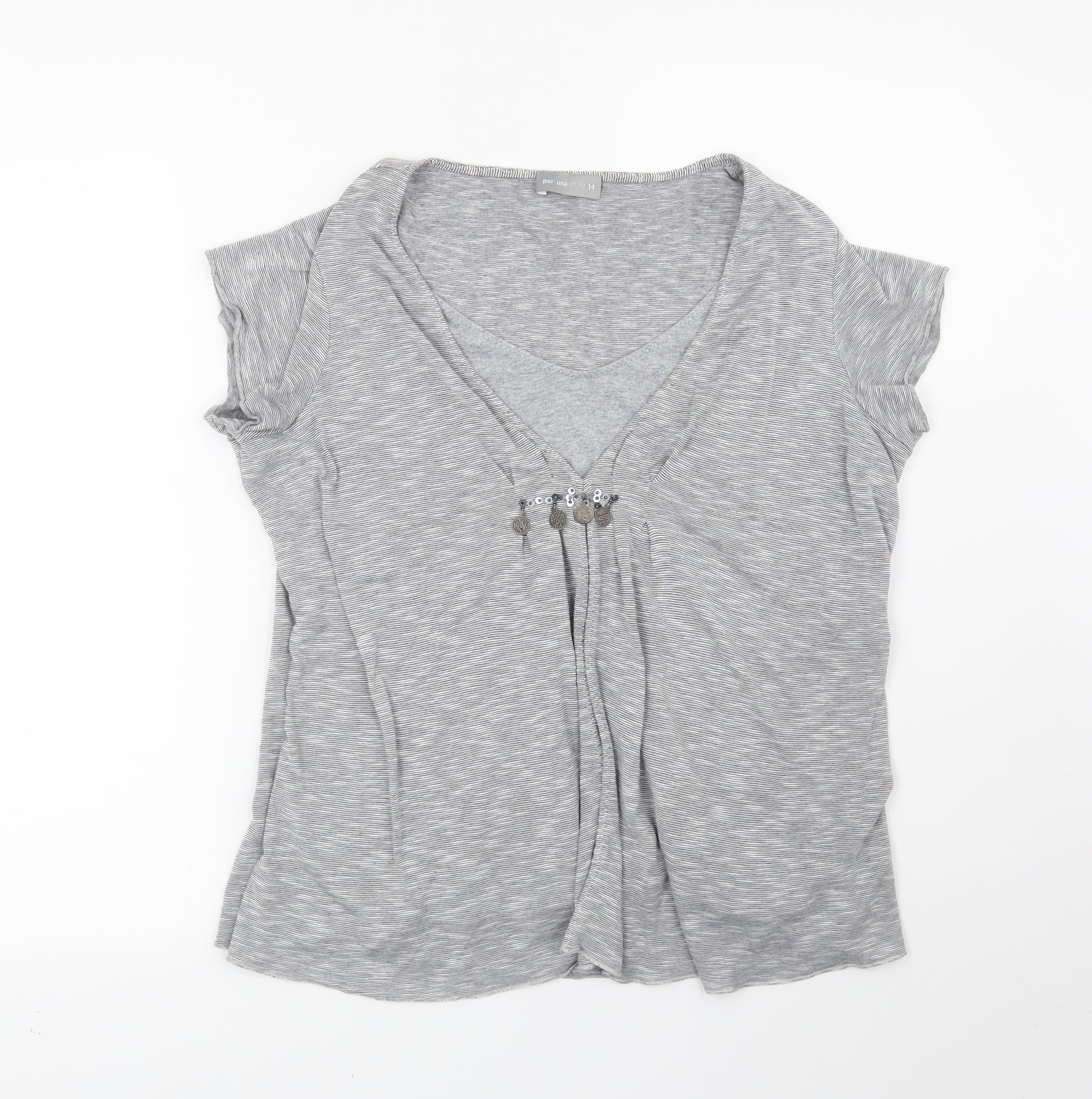 Per Una Womens Grey Striped Basic T-Shirt Size 14