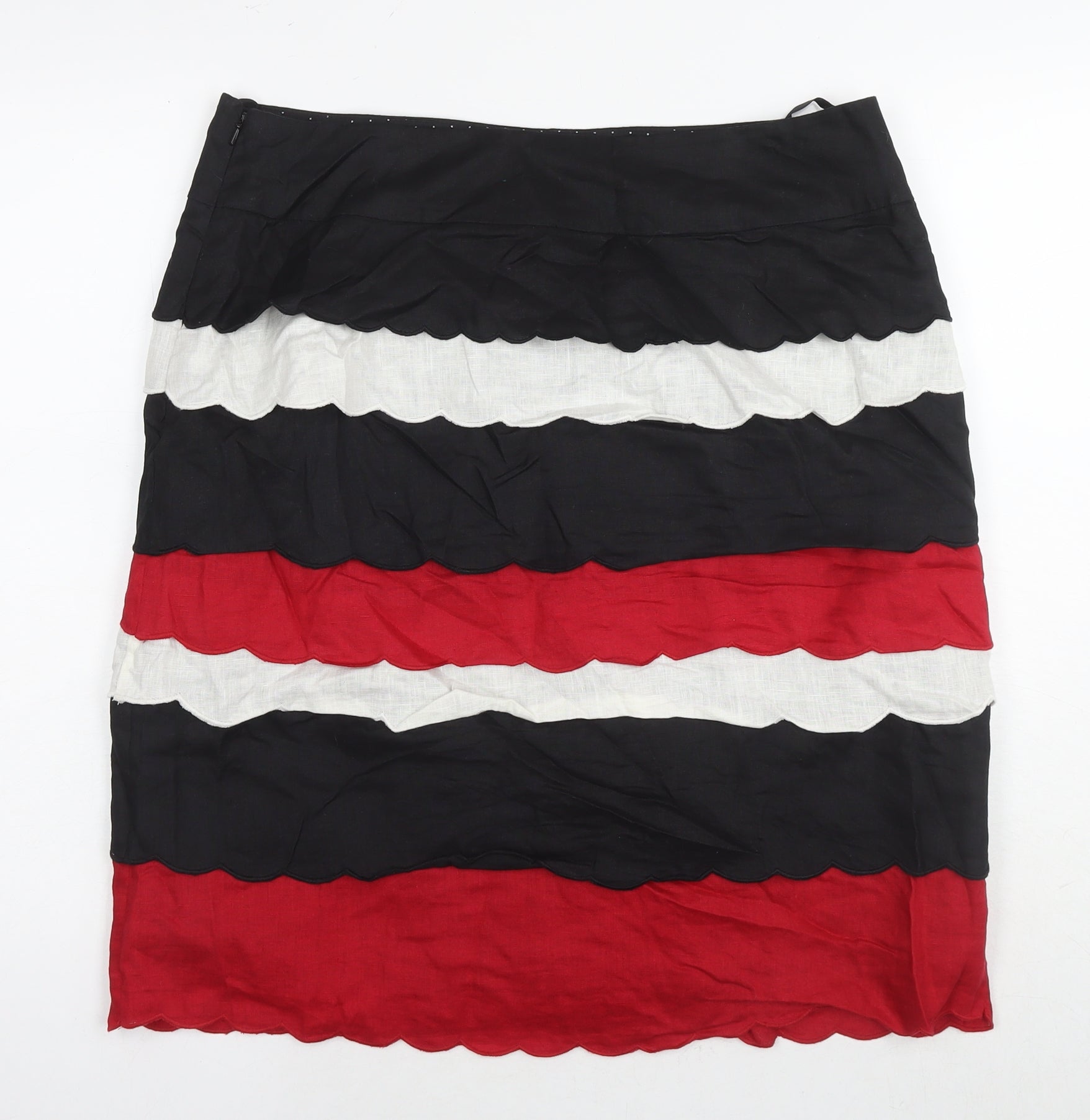 Per Una Womens Multicoloured Striped Linen A-Line Skirt Size 16 Zip