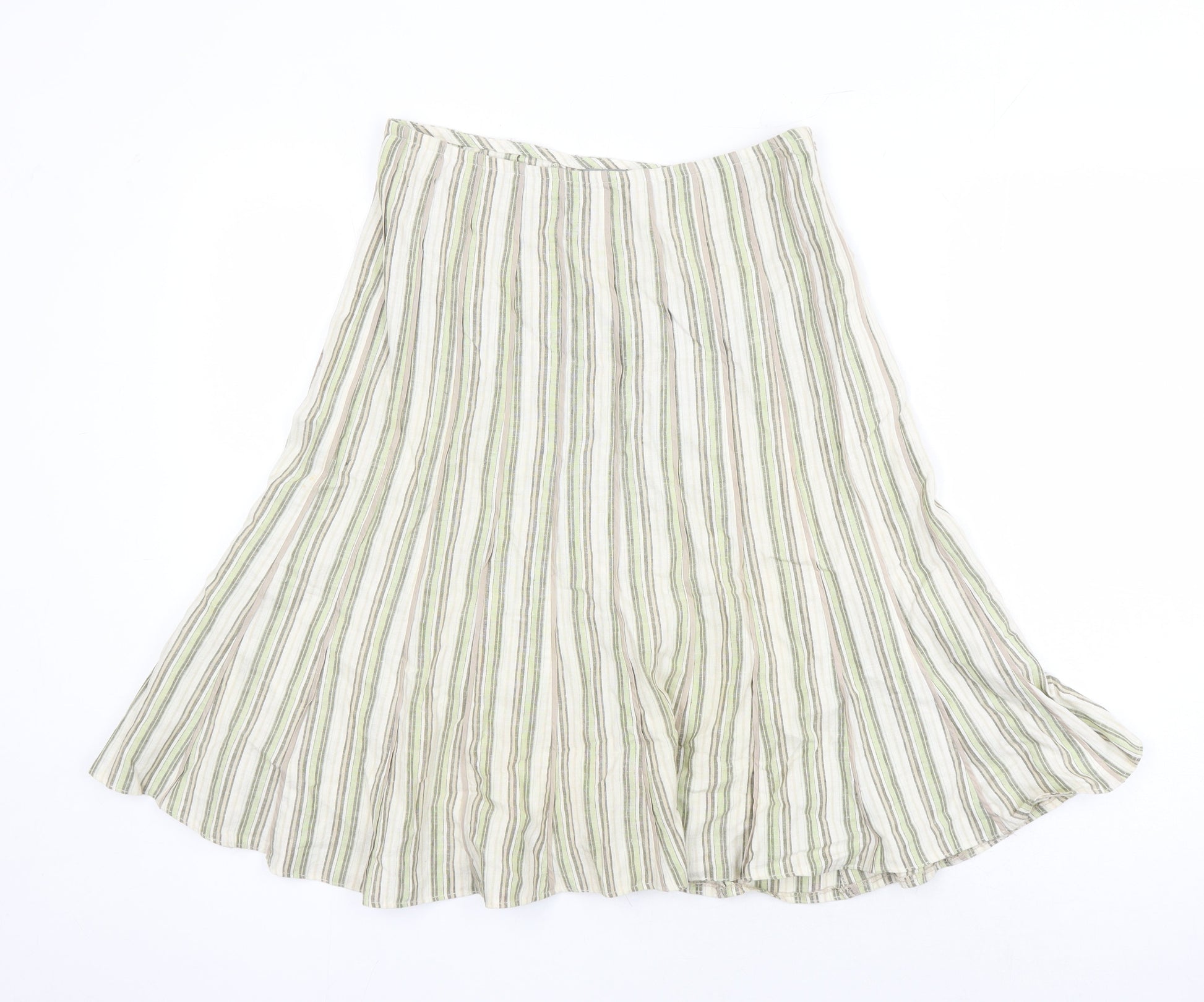 Per Una Womens Multicoloured Striped Linen Swing Skirt Size 8
